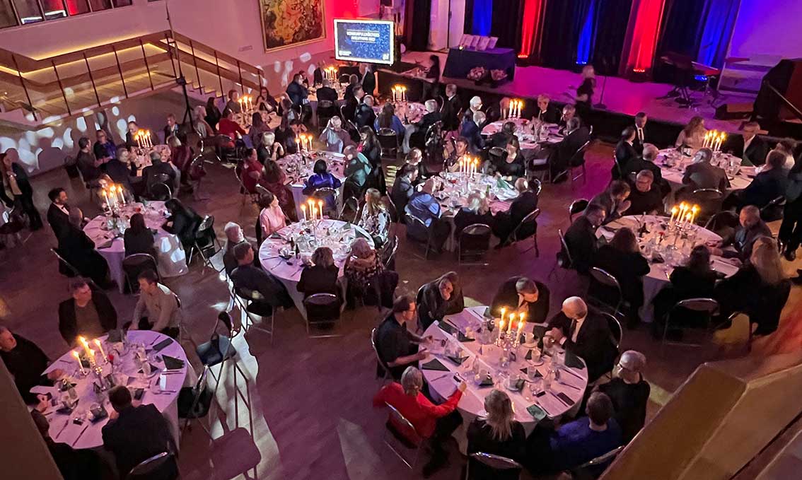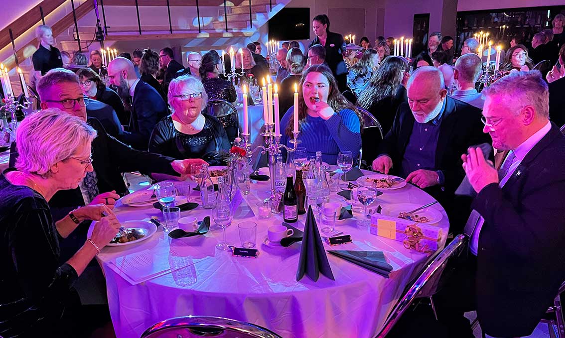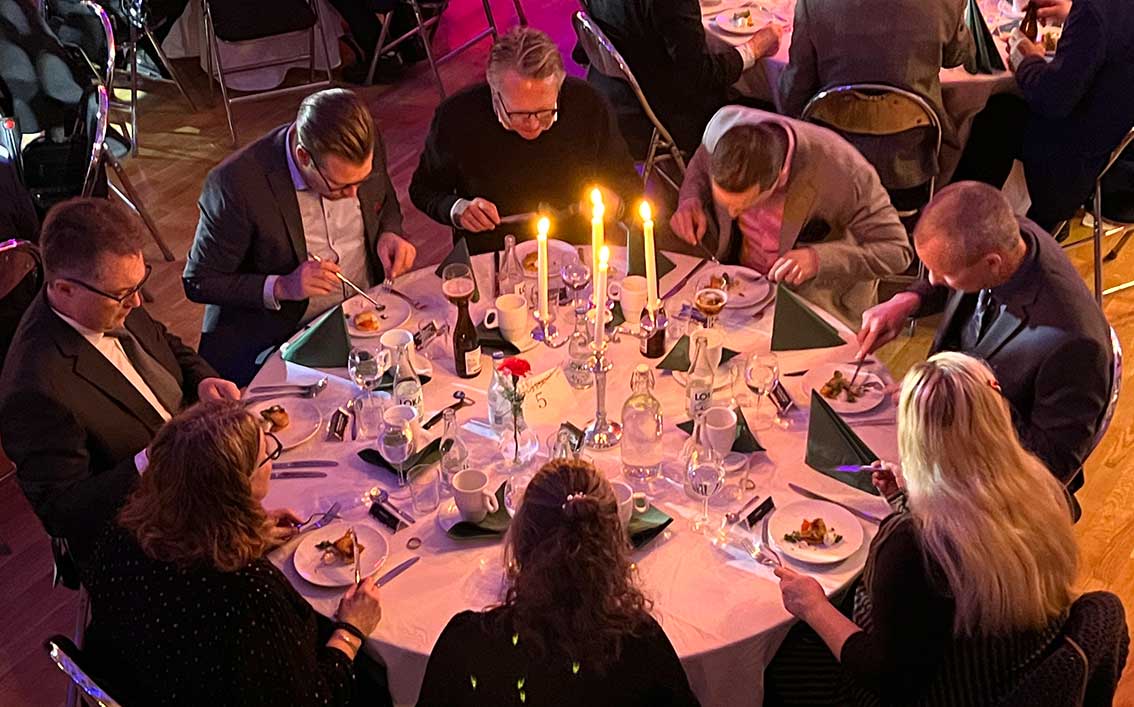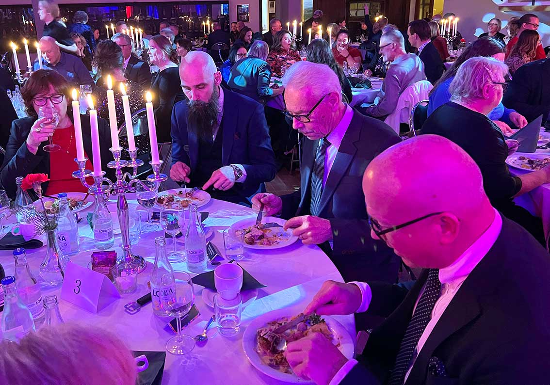 I andra artiklar har vi berättat och visat prisfesten och nu är turen kommen till middagen. Det var kanske itne en bal på slottet men inte långt därifrån.
