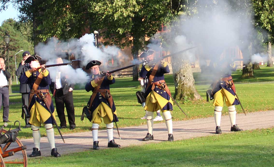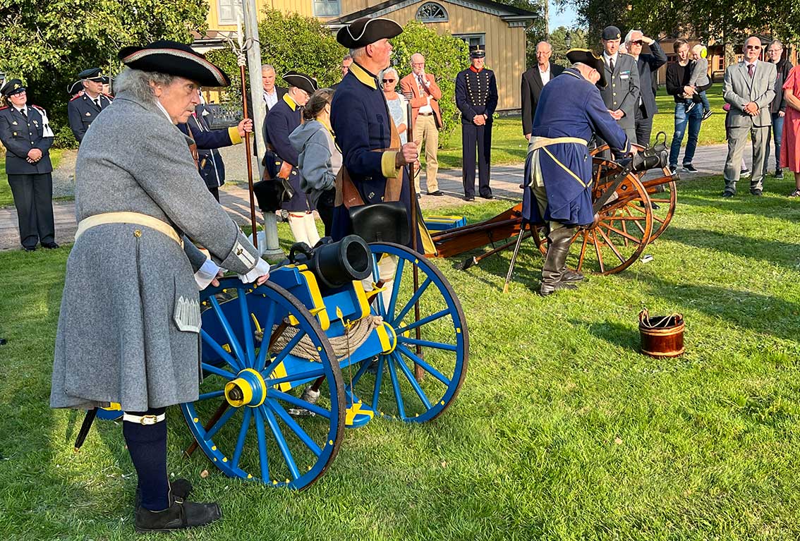 Smålands Karoliner svarade för parad och salut med både gevär och kanoner.
