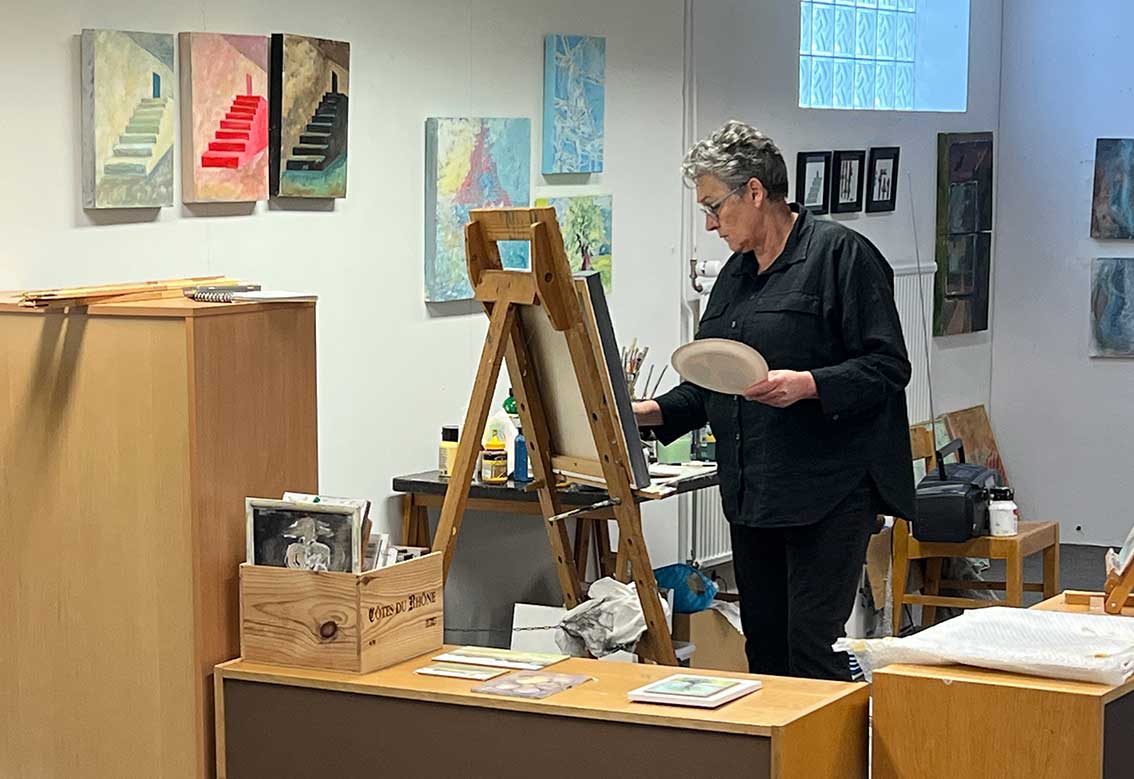 Konstgruppen Blick startade för 27 år sedan och tjejerna har blivit lite äldre men konstintresset har de behållit, Berit Tropp Ljungberg, Lena Hansson, Inger Hellström Hellström och Kerstin Lundahl. De är alla kring 70 år. Tidigare var även Birgit Karlsson med men hon har ingen möjlighet att medverka längre. Ett par av dem har målat i snart 50 år.