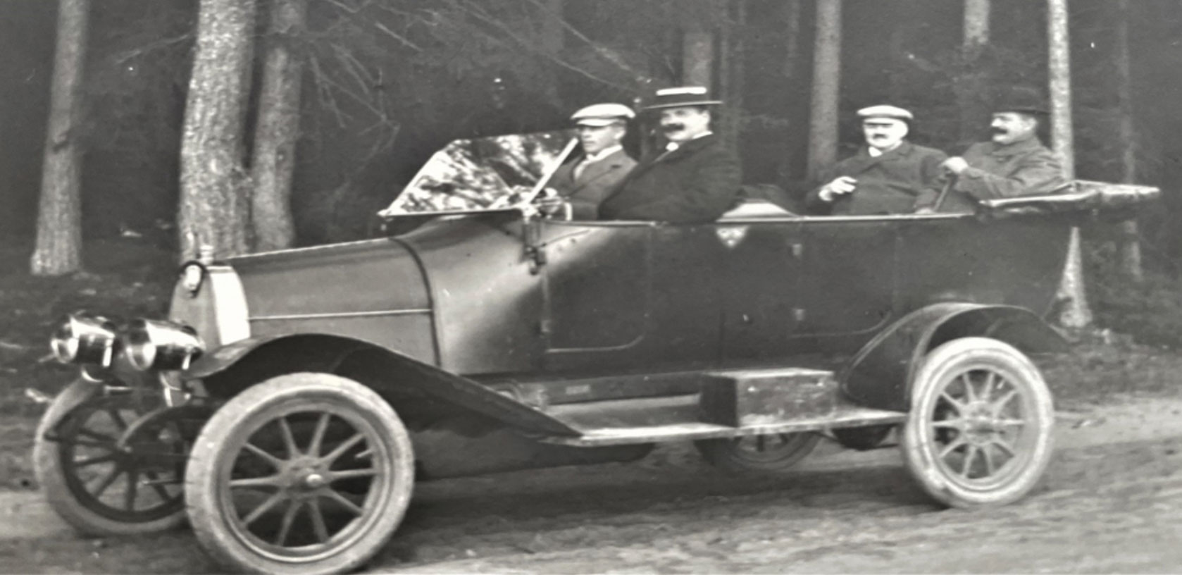 Den första bilen i bygden var en Sperber från 1912 som importerades från Tyskland gemensamt av direktör N.G Thulin, direktör Oscar Ljungberg, direktör Oscar Bengtsson och fotograf Bror Malmqvist. Bilen var sexsitsig. Ingen av ägarna kunde köra utan chaufför var Karl Johan Bergkvist. Carl Åberg köpte bilen 1919. Oscar Ljungberg köpte då en egen 5-sitsig Nash.