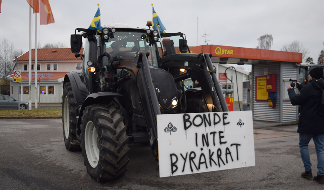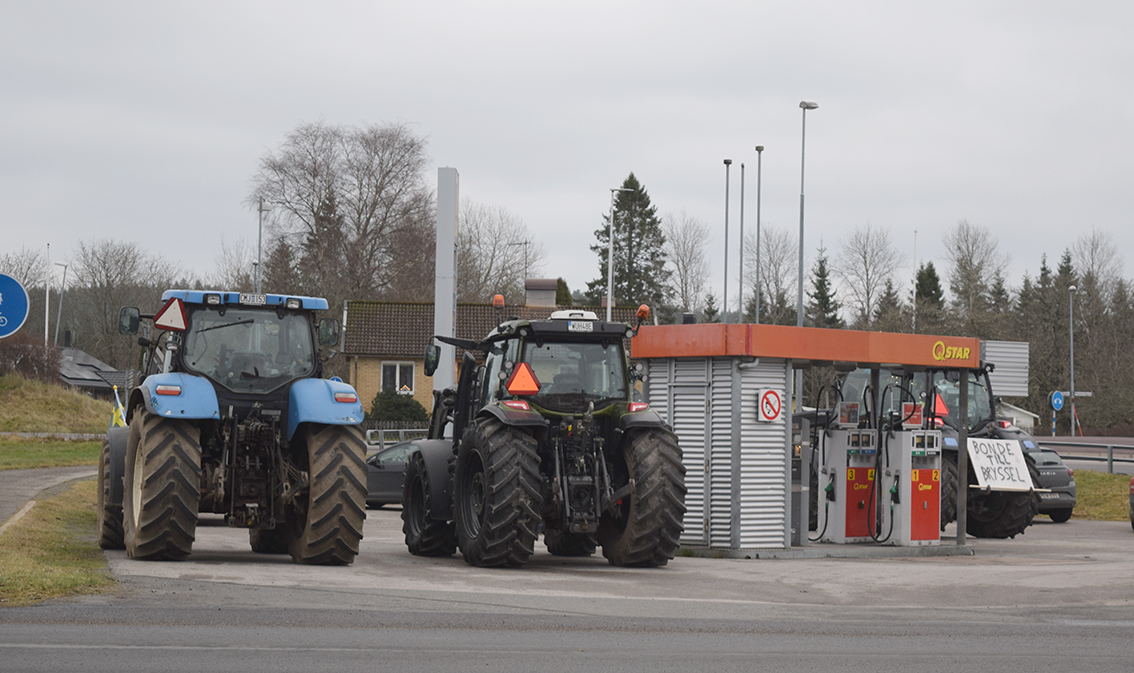 I dag passerade traktormanifestationen från LRF, genom kommunen, på väg mot Bryssel. Vi åkte till Hok där två ytterligare mötte upp. – Viktigt att visa oss, menar kommungruppens ordförande Roger Andersson från Torarp.