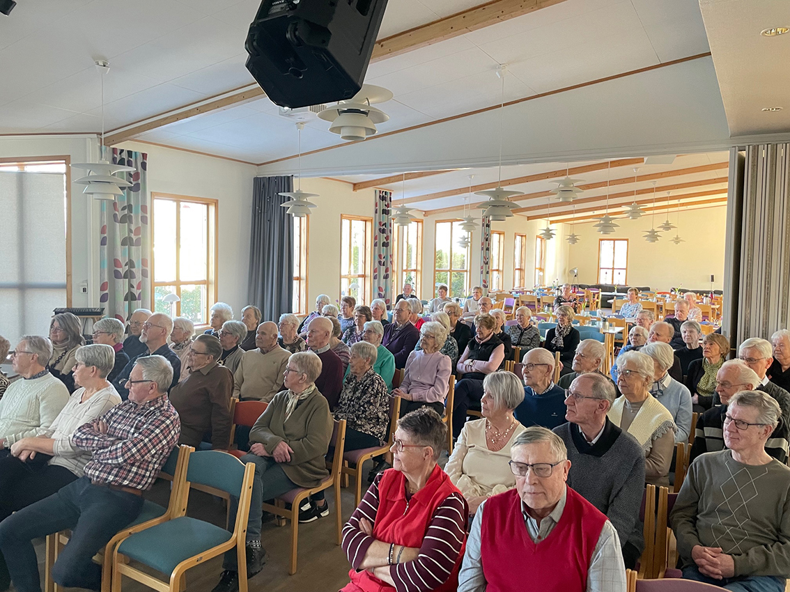 Cirka 75 besökte samlingen där temat var ”gammal blir man när minnena är fler än drömmarna.” Detta handlade om att våga drömma och inte bara leva i det förgångna. Budskapet om bilderna på det gamla och kantstötta var ungefär: Det spelar ingen roll om vi är tilltufsade och kantstötta. Värdet är detsamma ändå!  Det är den inre människan som är det viktiga, inte den yttre.
