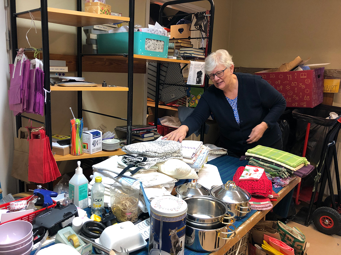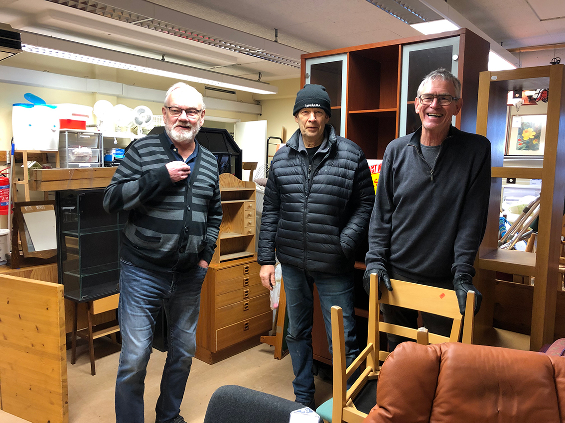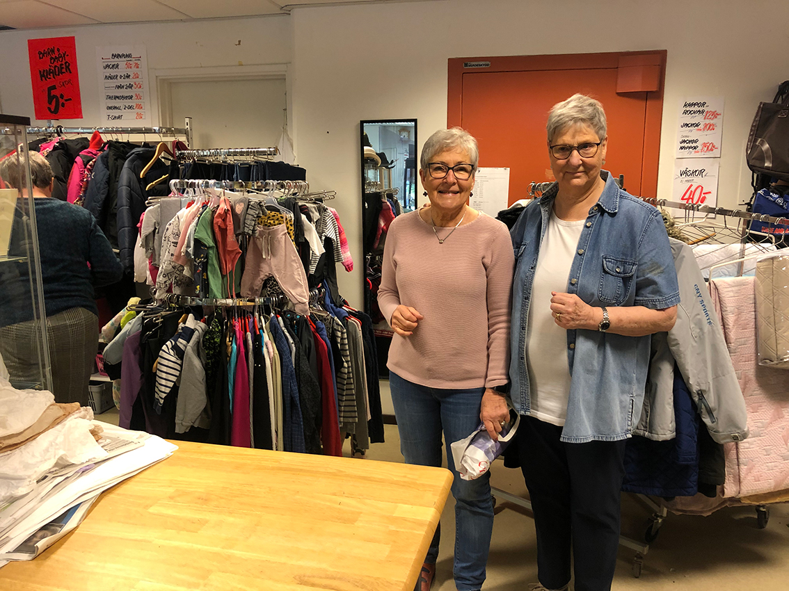 – Vi träffas måndagar och torsdagar då vi plockar upp varor och förbereder butiken som är öppen torsdagar till lördagar. Vi är ett tjugotal som hjälps åt i butiken. Vi har flera fantastiska karlar här men karlar hade vi nog behövt några fler, det kan vi aldrig få för många av, avslutar Gunilla Göransson.