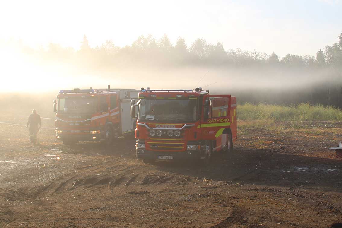 Arbetet med att släcka och förhindra spridning är helt annorlunda. Här flyttar man mycket av det som ligger intill branden till annan plats på området för att minska risken för spridning.