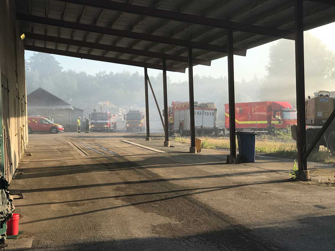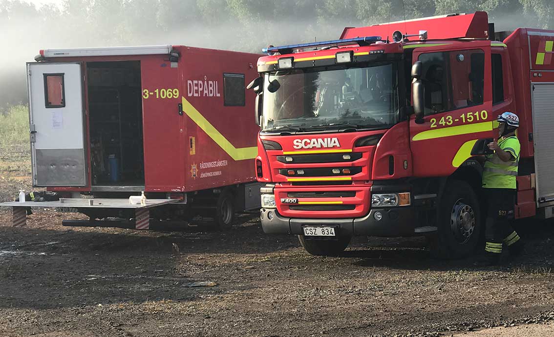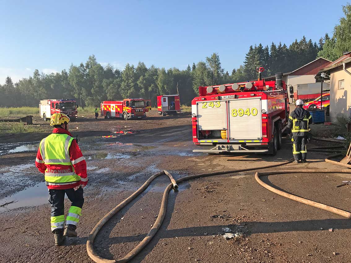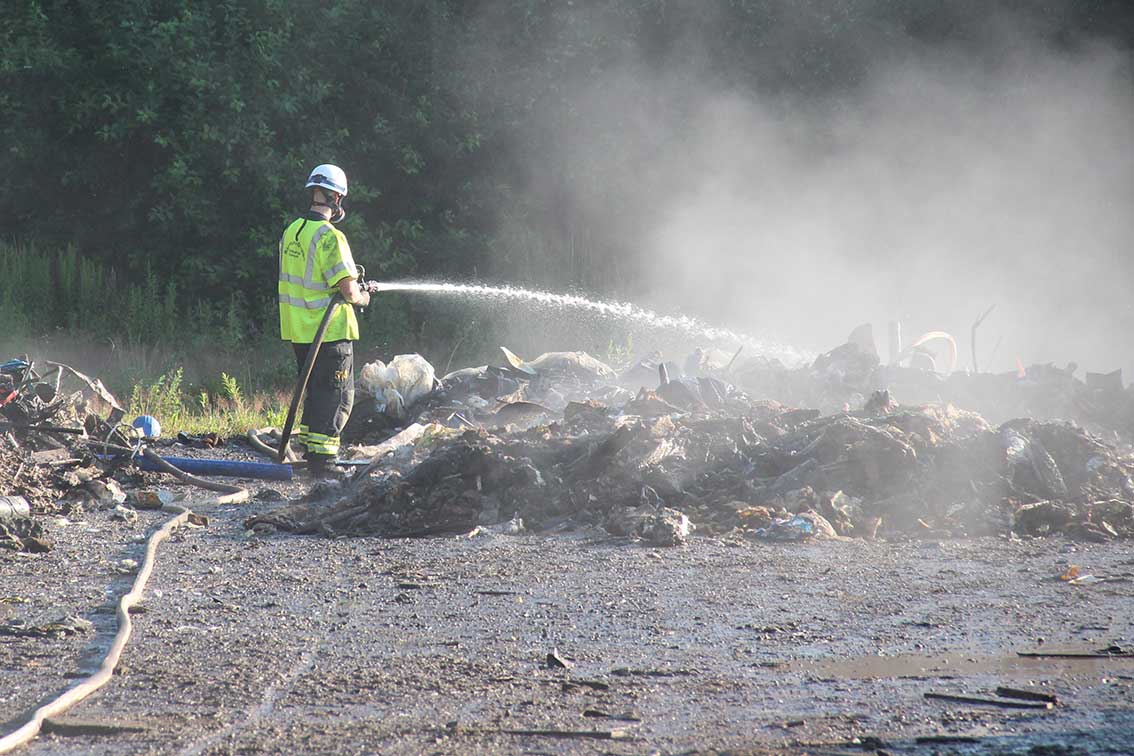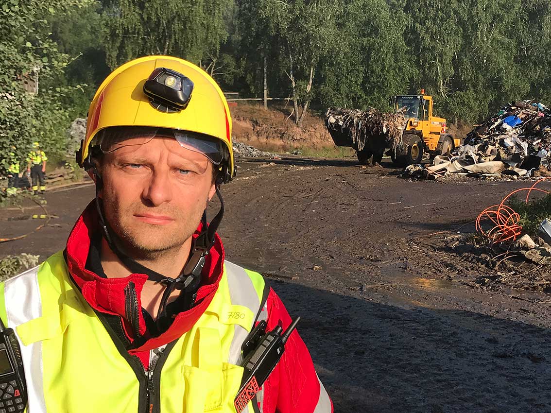 Johan Nilsson från räddningstjänsten i Gnosjö berättar att detta är ungefär som branden vid återvinningsanläggningen i Vaggeryd för några år sedan. Han var själv i arbete även då: