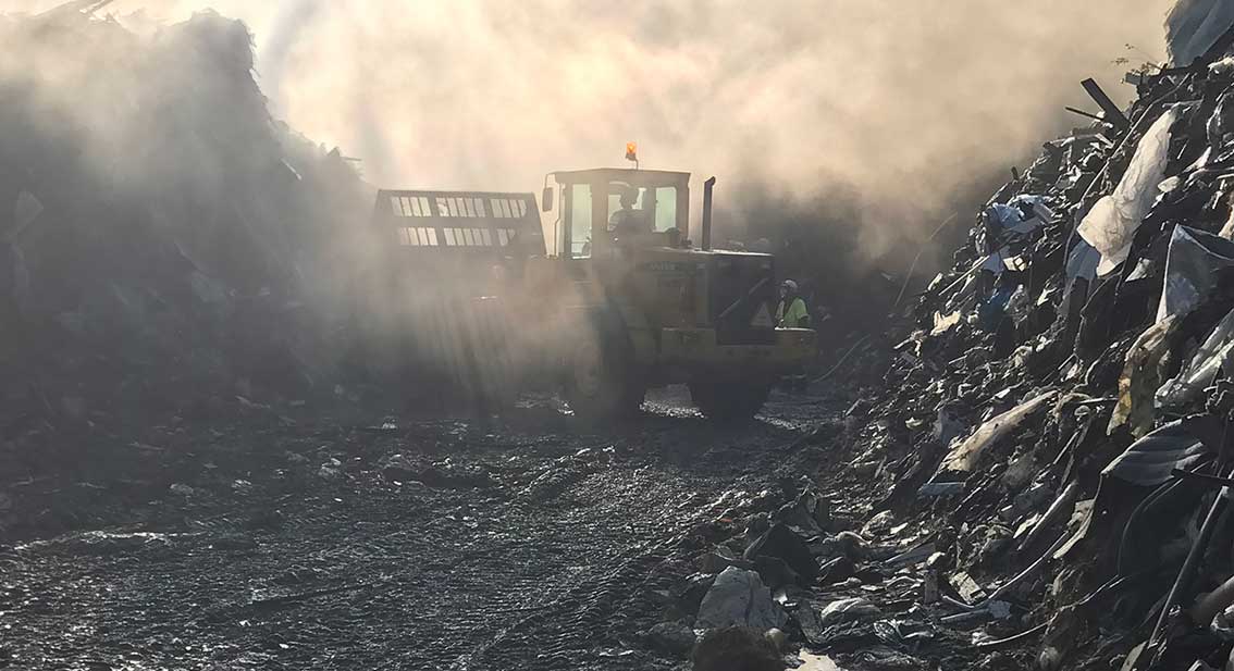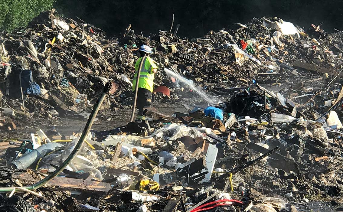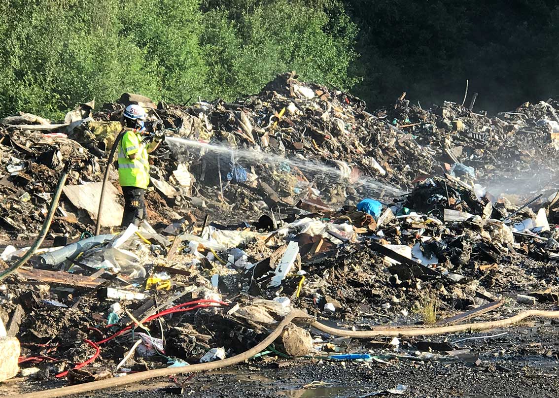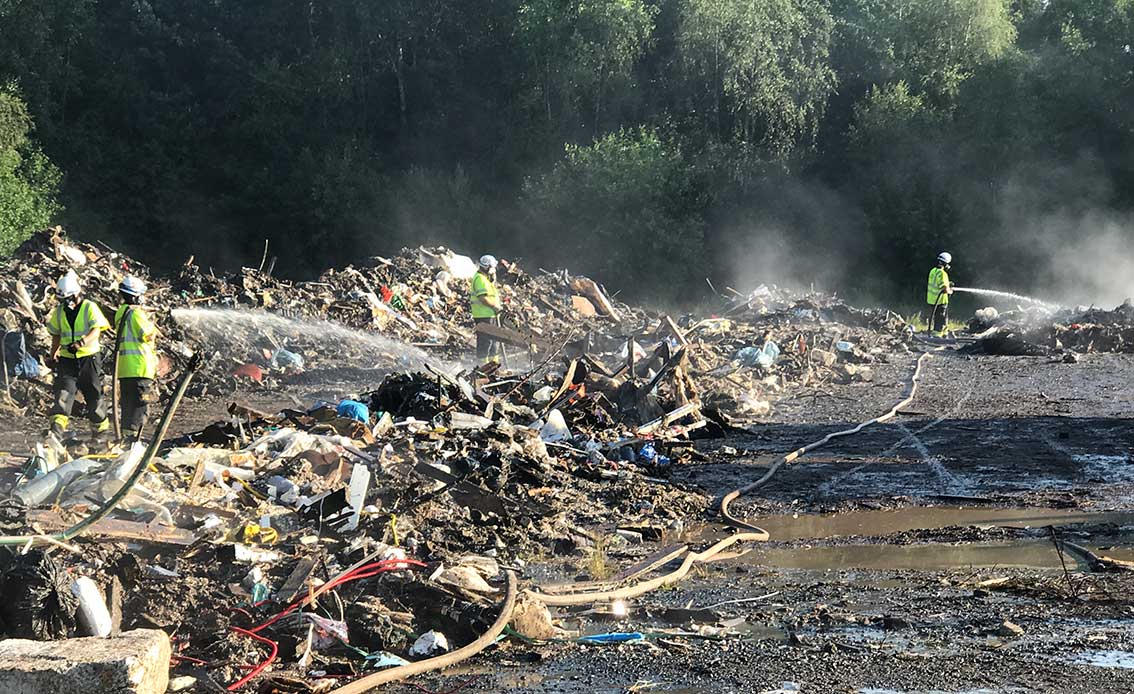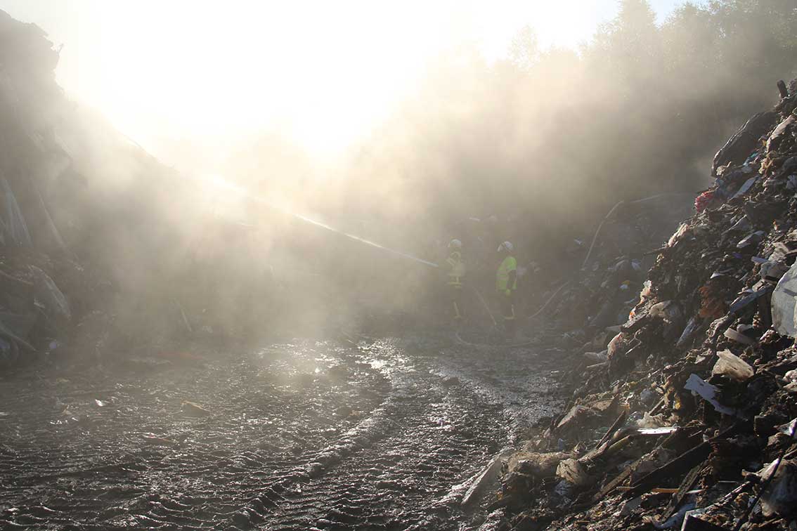 Johan Nilsson från räddningstjänsten i Gnosjö berättar att detta är ungefär som branden vid återvinningsanläggningen i Vaggeryd för några år sedan. Han var själv i arbete även då: