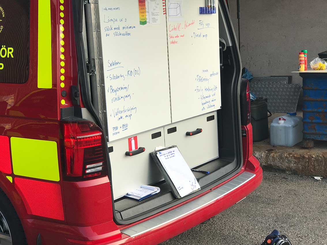 Vid vårt besök efter klockan 06.30 på morgonen var ett 20-tal från räddningstjänsterna i arbete plus att inhyrd personal hjälpte till med transporterna inom området.