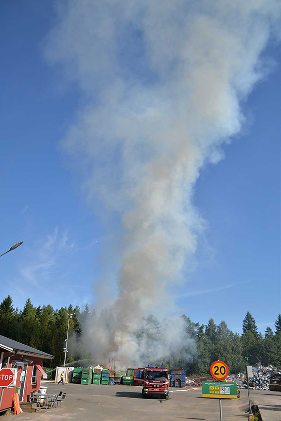 Klockan 09.40 inkom larm till SOS om brand vid avfallsanläggningen Rang-Sells återvinningsanläggning vid Hörle Bruk