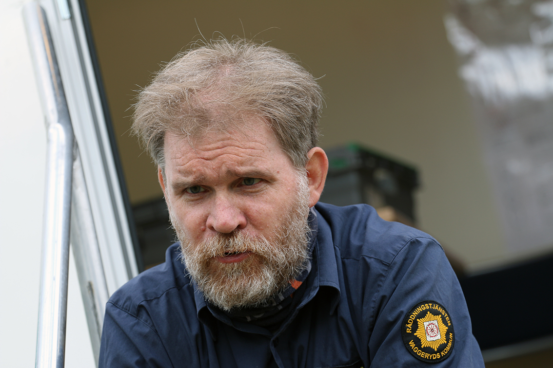 – Vi är fyra stycken här från räddningstjänsten hela tiden samt två ambulanssjukvårdare. Vi har fyrhjulingar med släp som vi använder oss för att på ett smidigt sätt ta oss runt här på stigarna i skogen. Med oss har vi diverse släckredskap och en hjärtstartare, börjar Mats Carlsson berätta när vi träffas i ledningsfordonet.