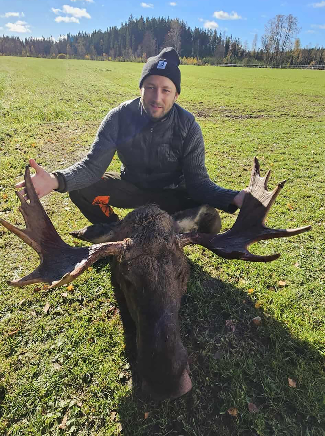 På lördagen satt Tobias på pass och fällde först en kalv och sedan efter nån timme med ett välriktat skott fällde han en ståtlig 12-taggare – ett jaktminne som snabbt blev samtalsämne i jaktlaget.