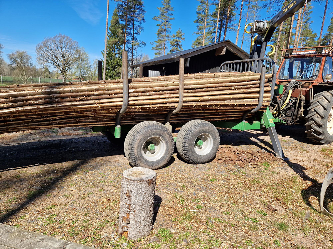 – Denna hösten har också cirka 300 enepålar huggits. Dessa blir pålar med lång livstid. Senaste veckan har vi nu också huggit cirka 650 granvidjor senaste veckan, hälsar projektledaren P O Toftgård som tillsammans med arbetslagen har samlat allt material i Nåthult för vidare bearbetning.