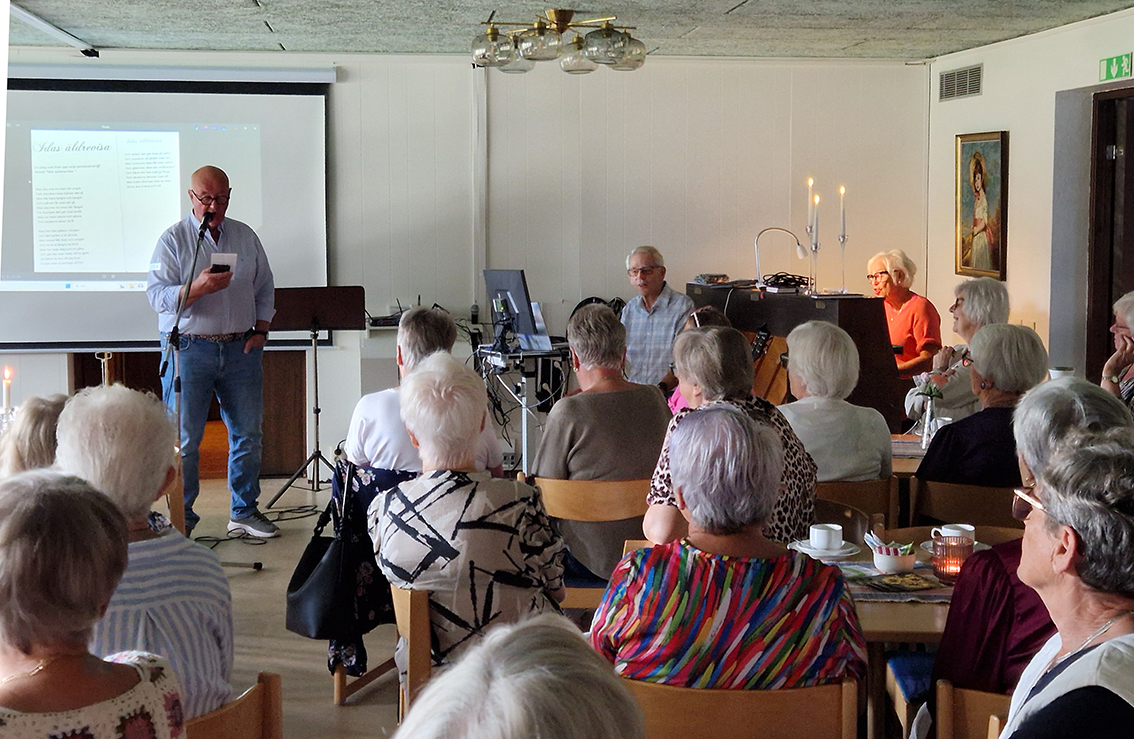 Hur har utvecklingen sett ut under de här 20 åren? – Ja, från att vara två till tre personer från början så har vi varit närmare 90 en gång. Men det var lite för många för att få plats här på källarplanet under kyrkan. Vi brukar vara runt 60 personer i snitt varje vecka. Det är trevligt. I dag firar vi med tårta till kaffet och väljer att visa ett bildspel som blickar tillbaka på de 20 åren, berättar Bengt.