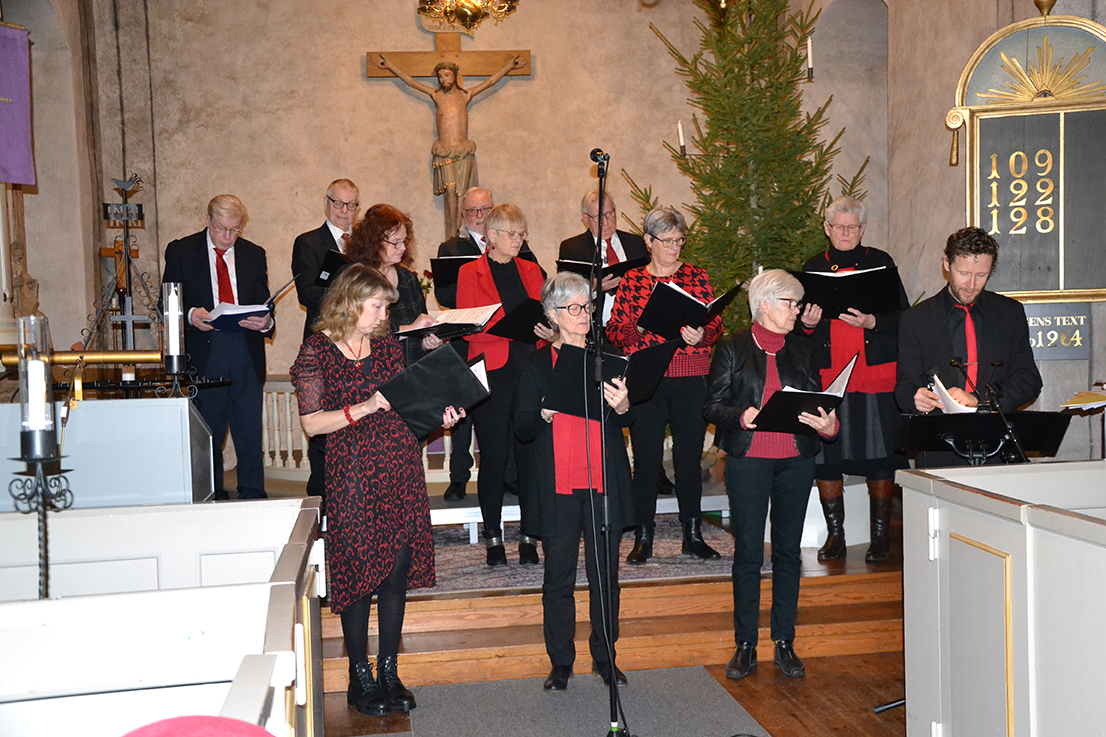 Hagshults kyrkokör med förstärkning och solist Daniel Hjelm som under ledning av kantor Anna-Karin Danielsson utförde denna, av många, efterlängtade julkonsert. Präst var Christina Virdung som i inledningen läste dikten ”det var en gång en åsna” av Ylva Eggehorn. Kören och Daniel sjöng flera av de älskade julsångerna, där vi i kyrkbänkarna frimodigt sjöng med. Daniel sjöng flera solonummer, bland andra, den tänkvärda sången ”Frid på jord”