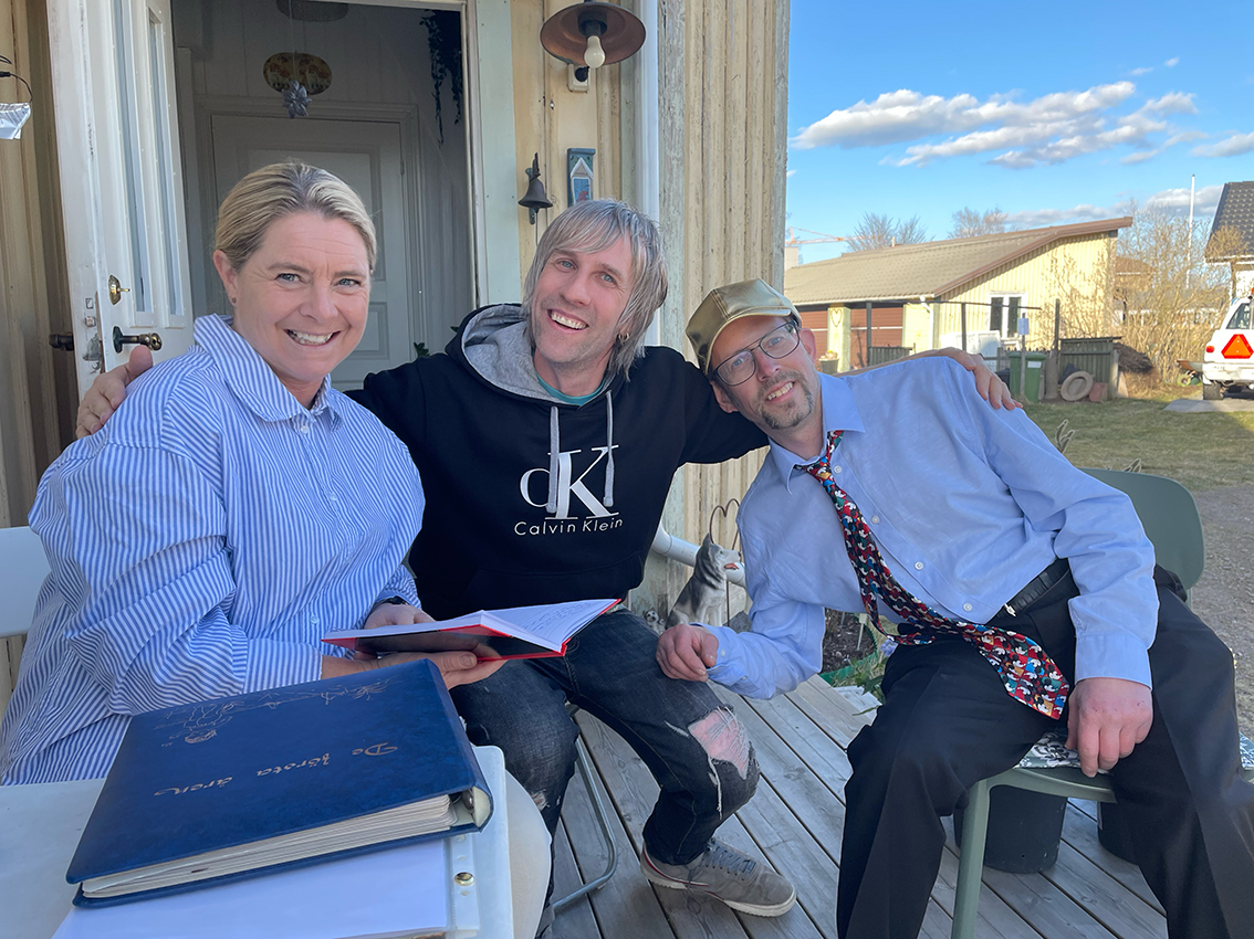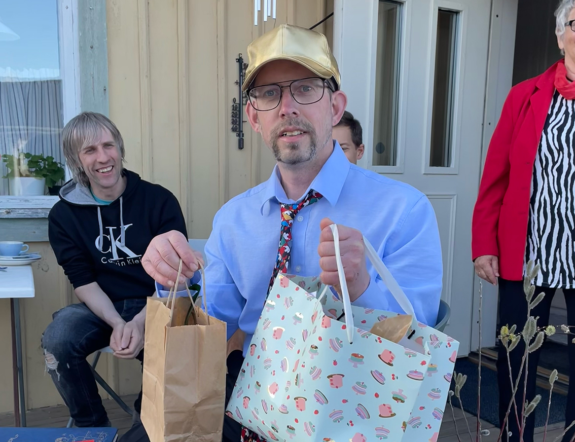 I den härliga vårsolen firade grannar, familj, jobbarkompisar från ICA och många andra Daniel med kaffe och hembakat. Han fick en massa presenter och blommor.