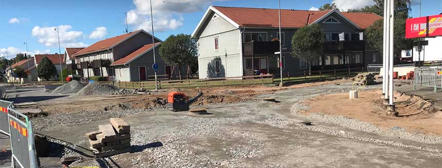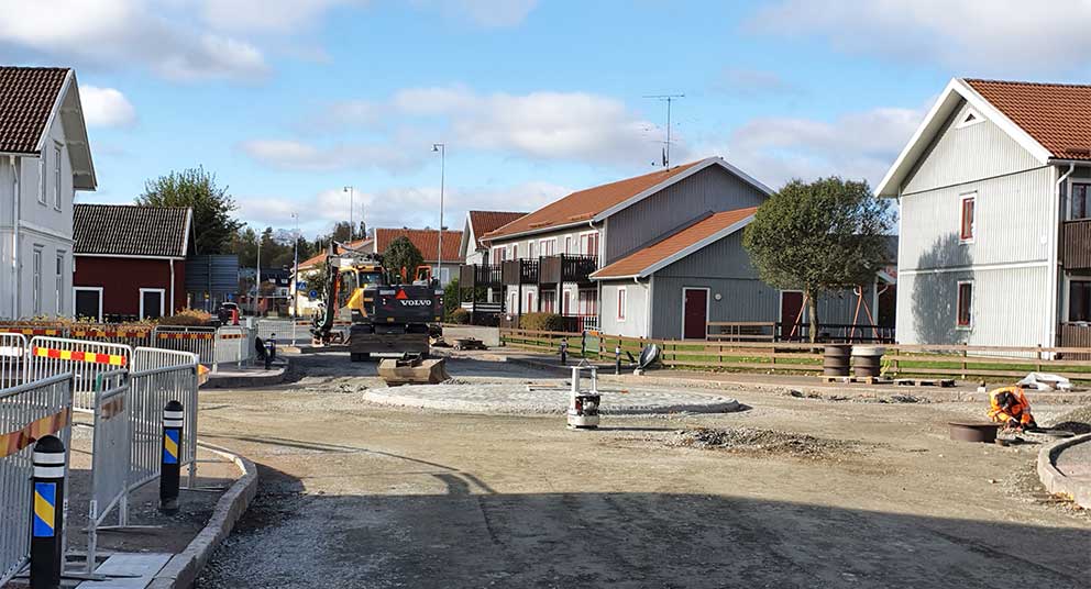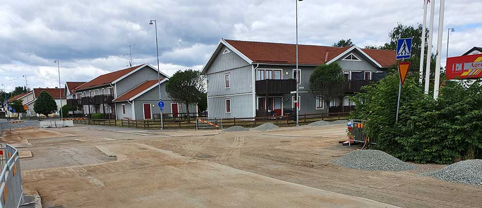 I måndags skulle korsningen Storgatan - Sturegatan i Skillingaryd stängas av och cirkulationsplatsen skulle börja ta form