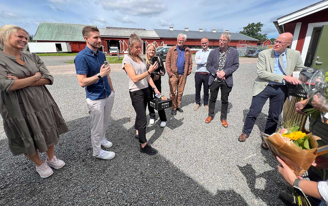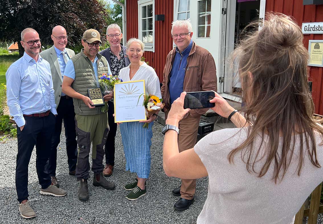 – Jätteroligt, fantastiskt, säger pristagarna om besöket av en rad personer från kommunen och Företagarna som begav sig ut på vägarna sydost om Skillingaryd.