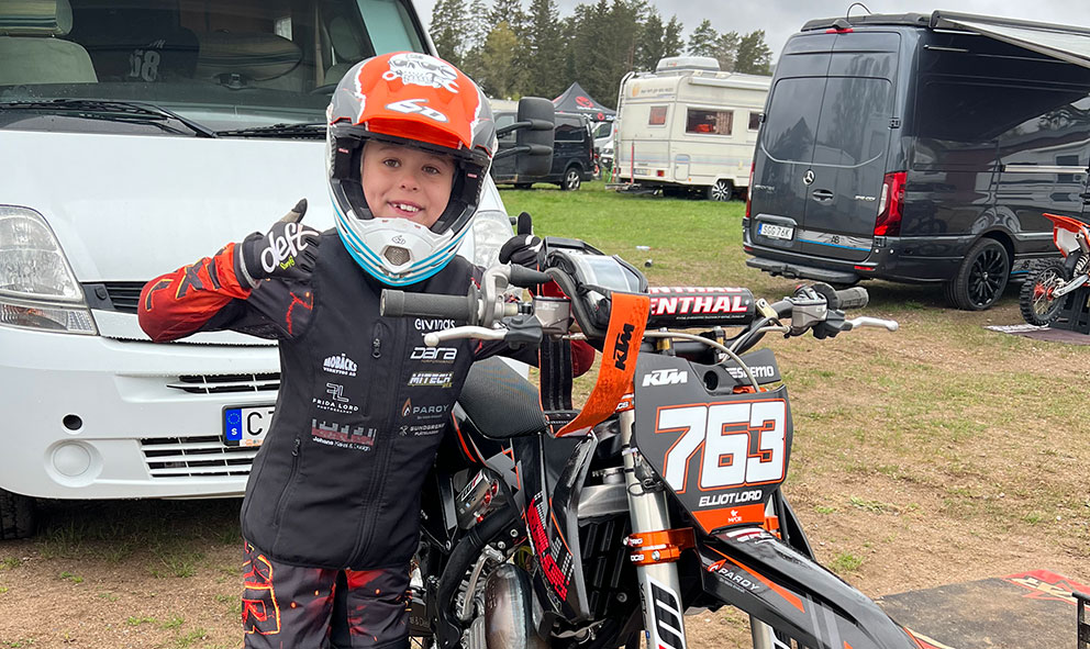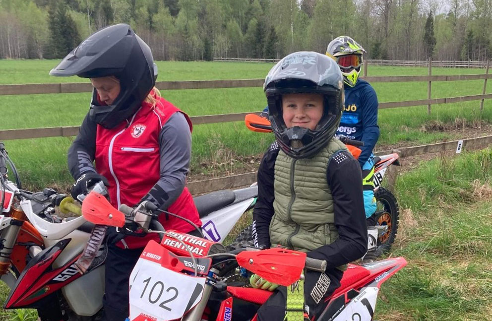 Hur blir tävlingssäsongen 2021? – Det är nytt år och ny säsong. Vi hoppas att restriktionerna släpps något, så vi får köra mer och tävla också förstås. Vår sport kan faktiskt utövas rätt bra ändå, då vi håller naturligt avstånd och har ingen närkontakt med varandra. Eftersom själva tävlingssäsongen uteblivit mer eller mindre har vi tränat mycket i stället. Vi har hyrt in Per Larsen som jobbar som motocrosstränare. Under november och december har vi legat lite lägre dock. Eftersom vår sport är skadetyngd har vi nästan helt valt att lägga hjälmen på hyllan för att inte belasta sjukvården, som vi har stor respekt för, mer än nödvändigt. Under de senaste månaderna har det varit lätträknade minutrar på motorcykeln.