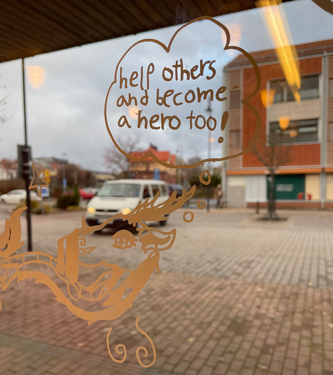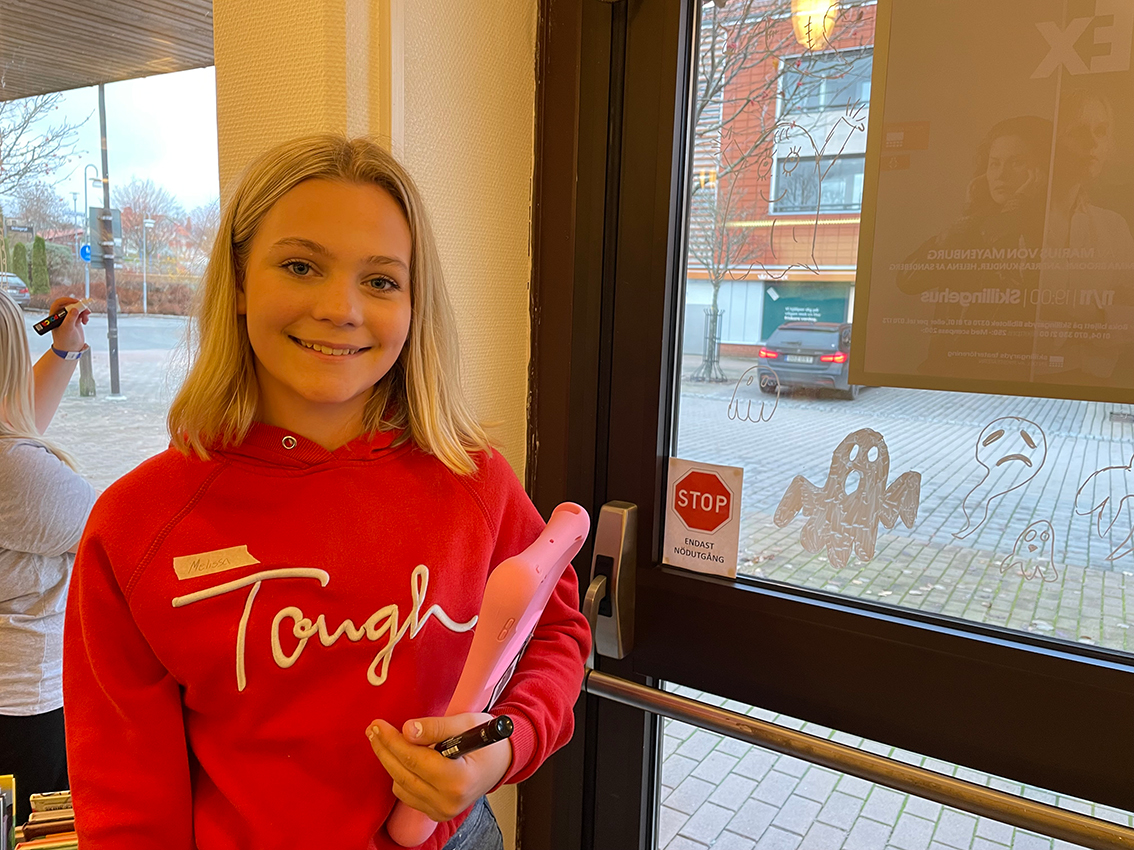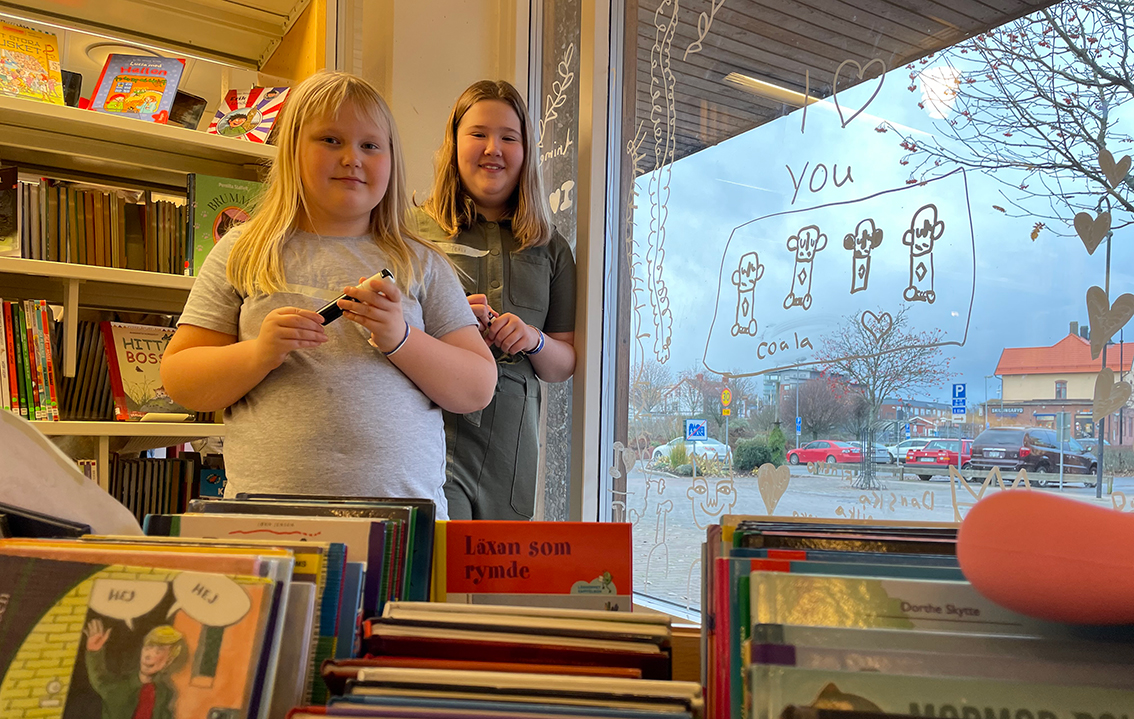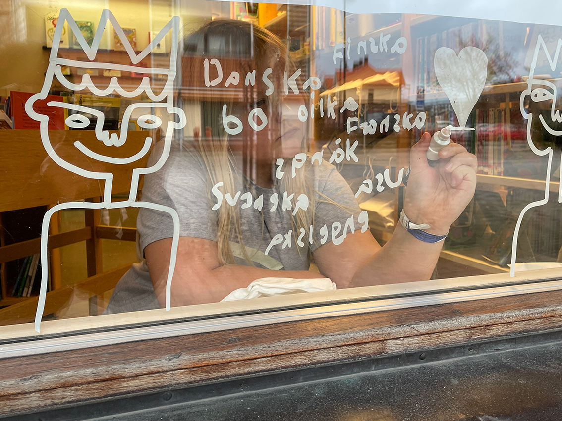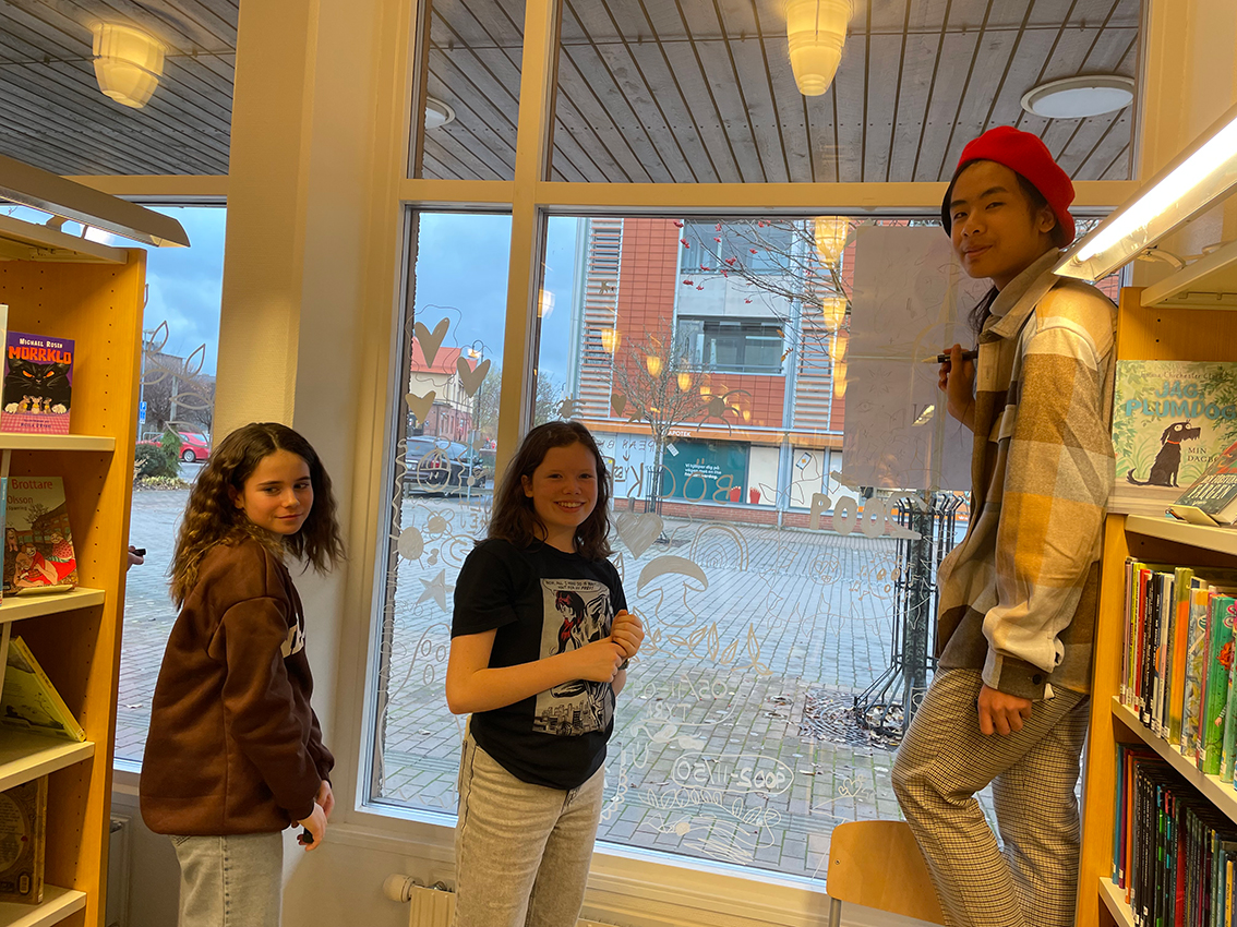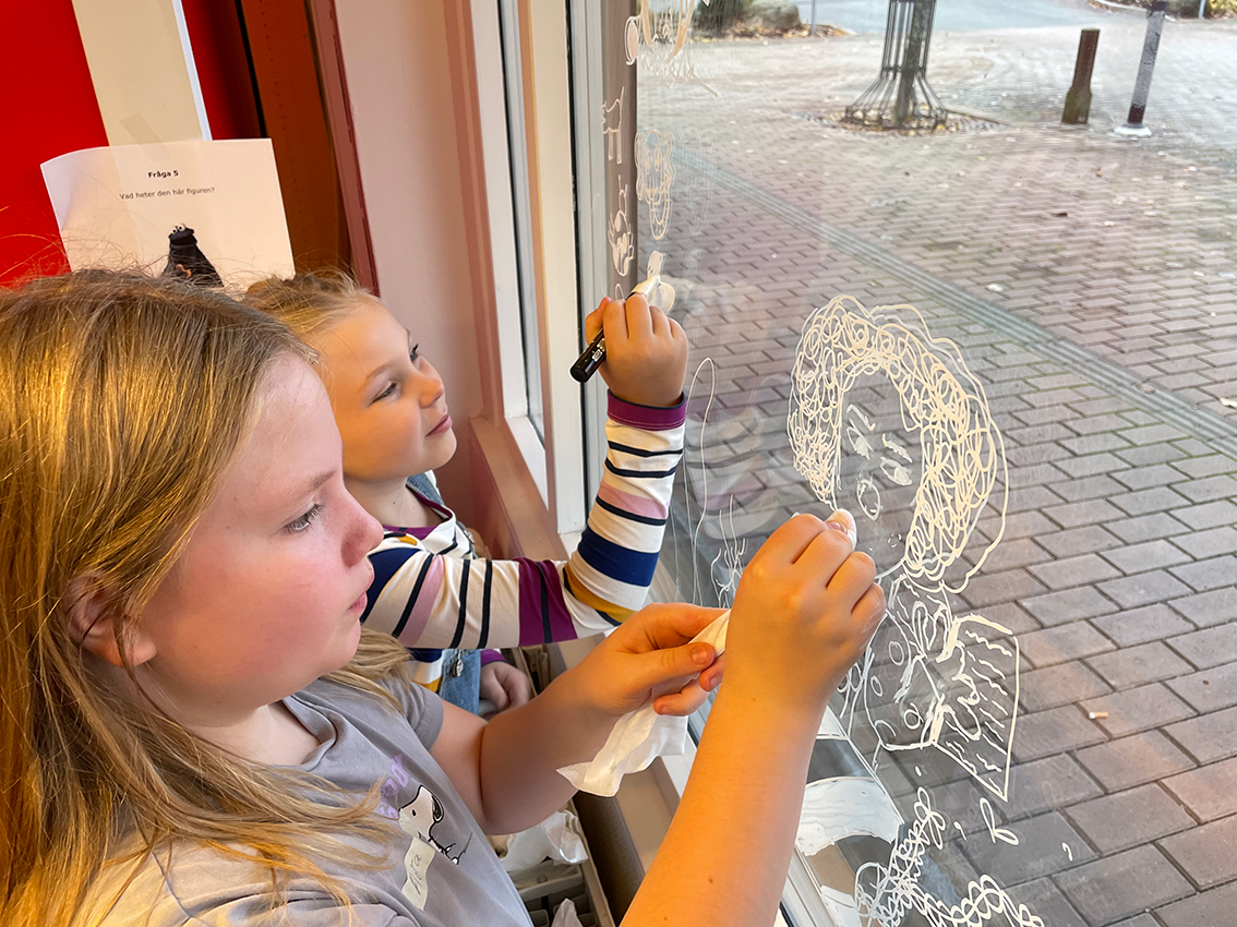 Under en av veckans höstaktiviteter fick man måla på fönstren på Skillingaryds bibliotek. Ja, det fick man faktiskt!