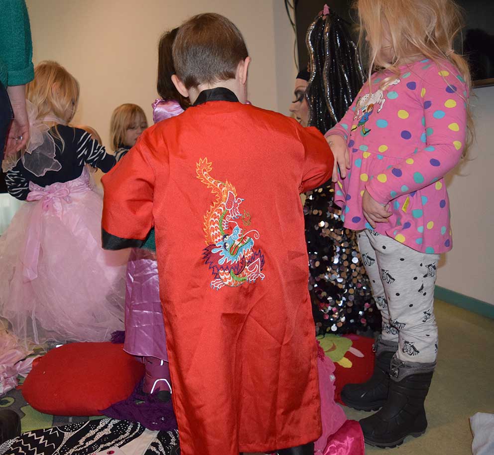 – Jag har tagit med mig sagoglitter som man kan få på handen, på kinden, bara lite grann och man önska sig något som är hemligt, avrundar Robert innan det var dags för barnen att få prova klänningar som fanns med.