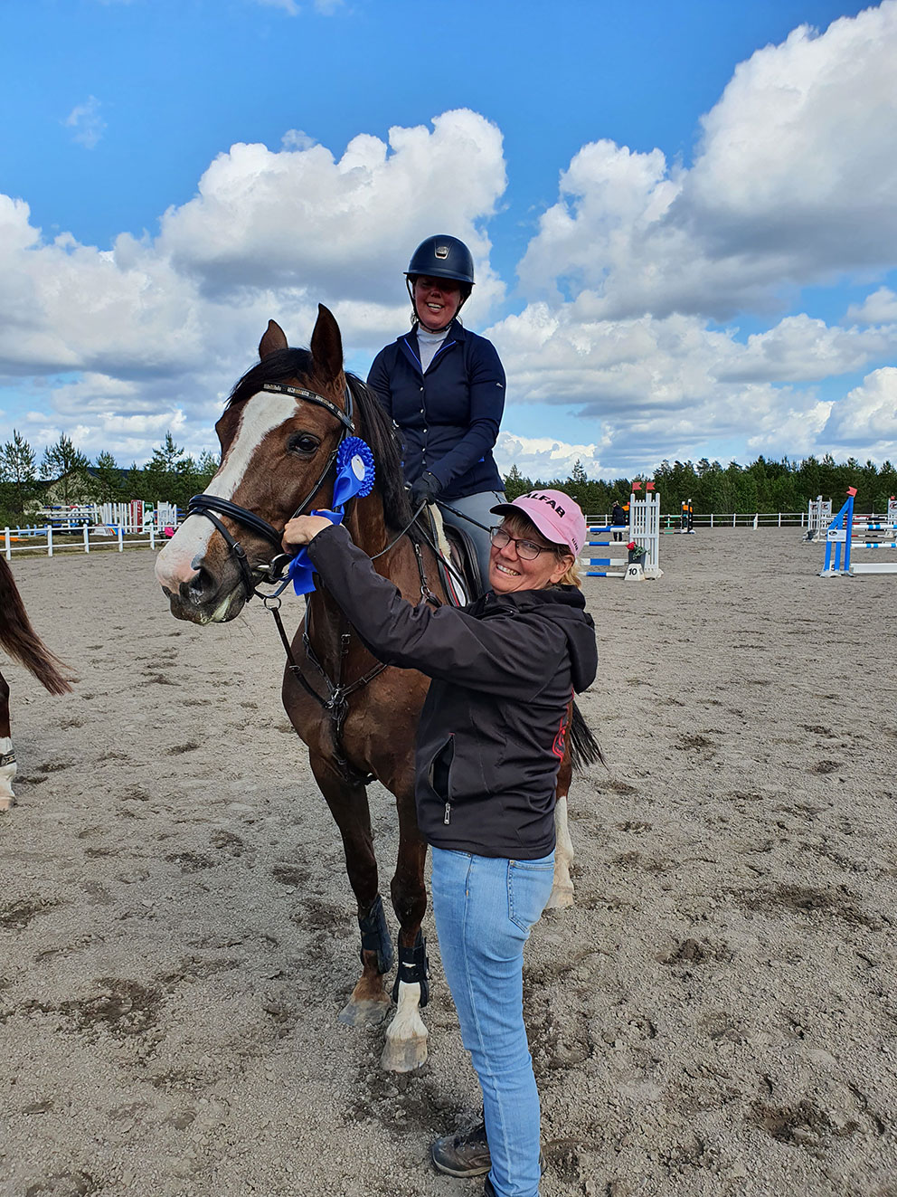 – Att tävla är det roligaste som finns. Just i dag blev det väl sådär, men det är bara lasta och åka hem med hästen. Kommer tillbaka hit sen och är funktionär istället. Vi är en fin klubb och jag trivs väldig bra här. Vi har en stor ungdomsverksamhet där vi fått många nya ponnyryttare. Nästa helg tävlar jag i Göteborg och det finns nog möjlighet att tävla varje helg om man vill. I dag har vi två hästar här. Min Nala B och systerns Felix som strax ska in och hoppa. Jag har ridit sedan jag var 13 år och att tävla är väldigt roligt.