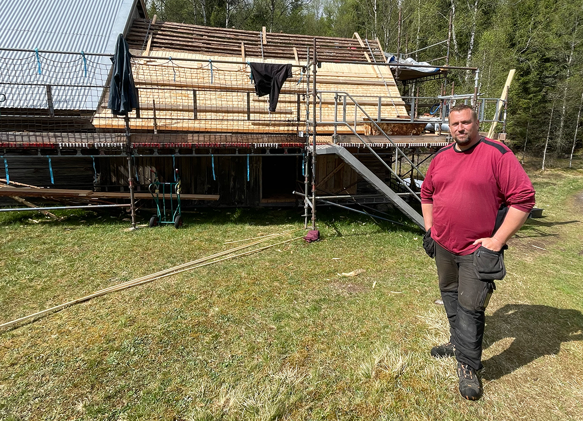 Gunnar Zackrisson, byggnadsvårdshantverkare från Aneby, berättar om sticketaket:
