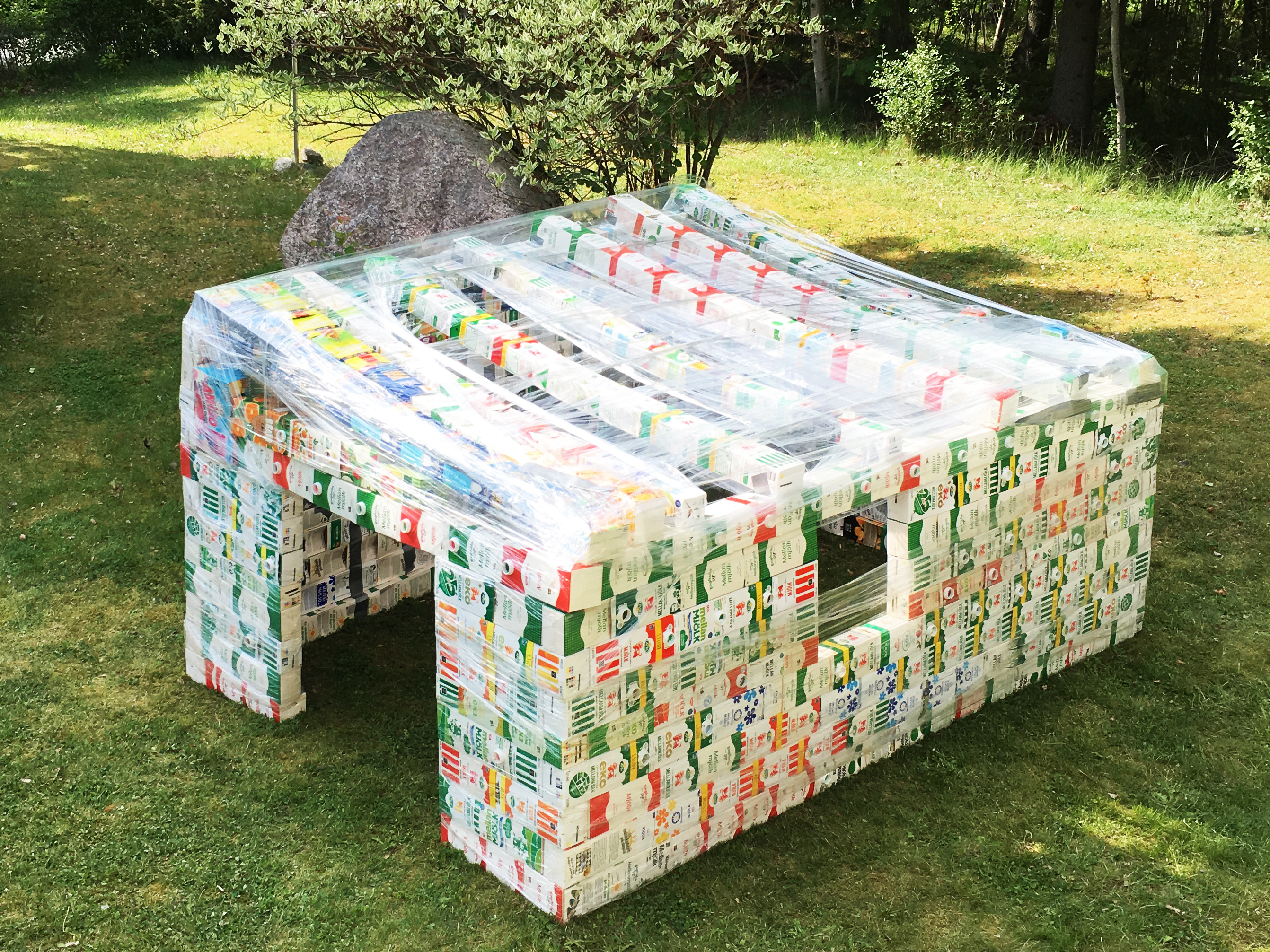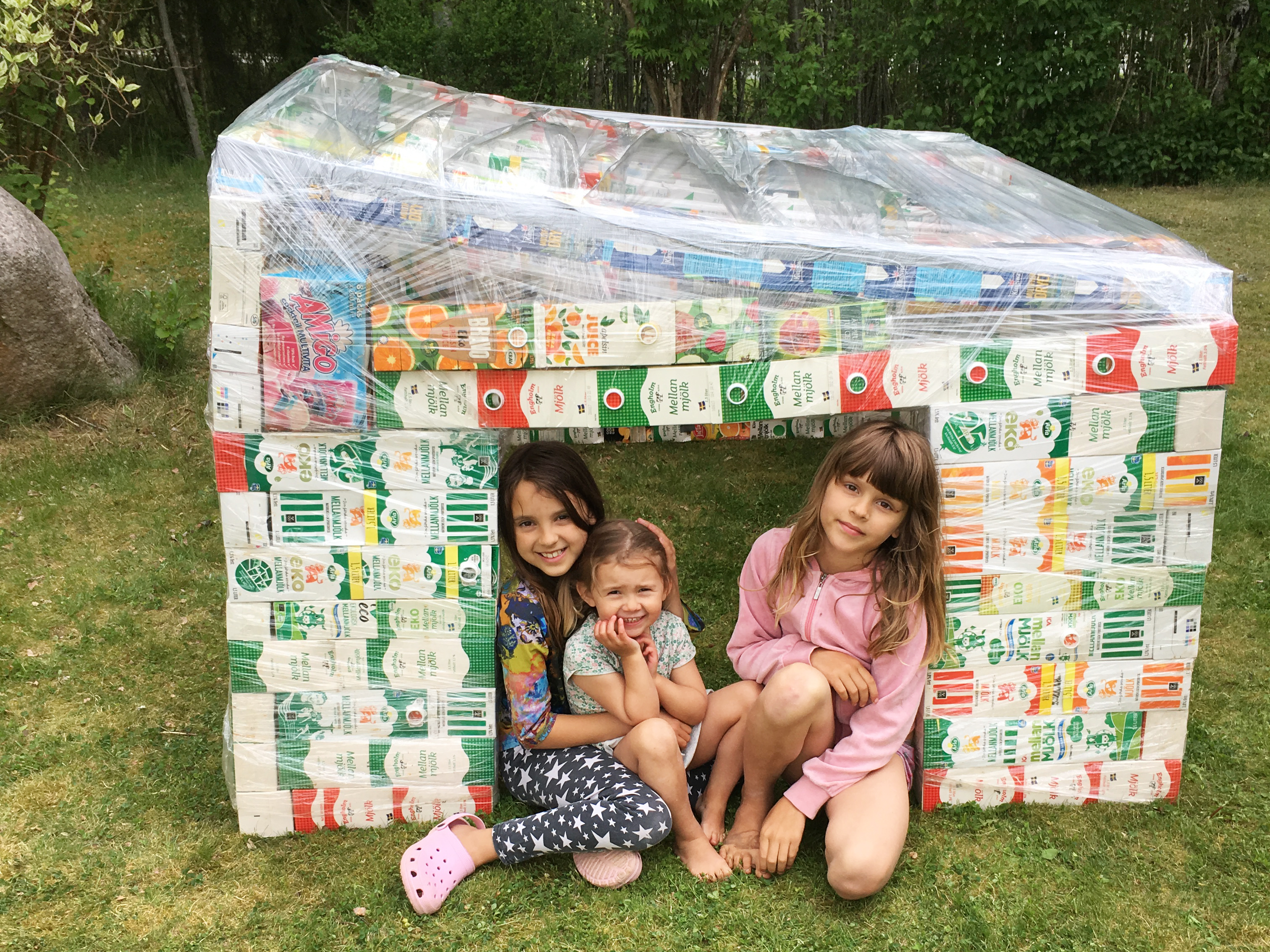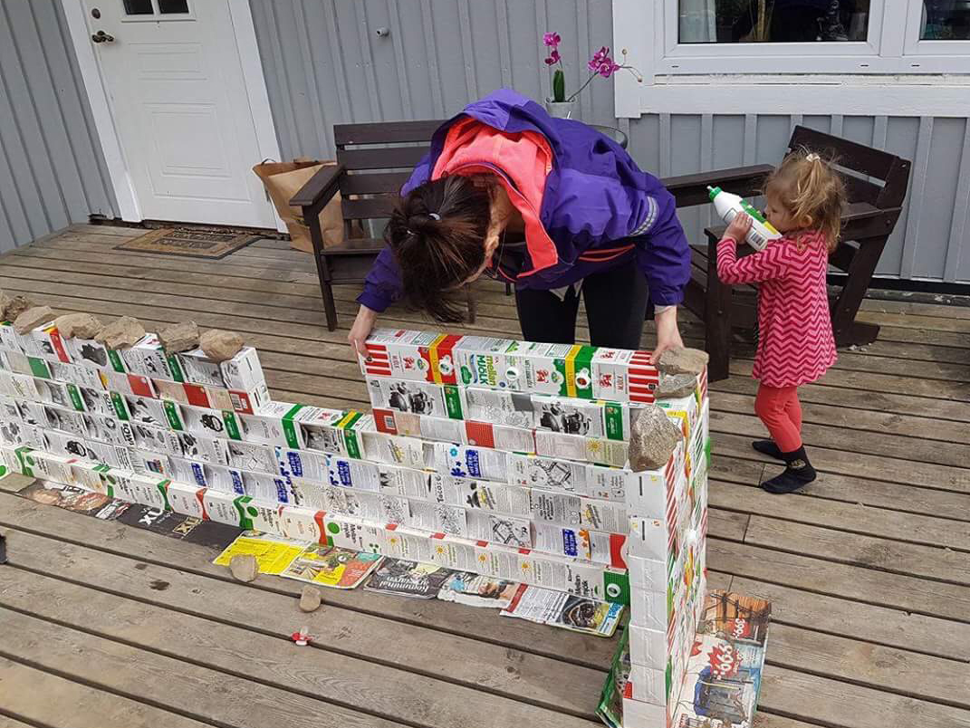 Under ett års tid samlade familjen Vidén-Kaltoft i Hok på diverse tetrakartonger för att snickra ihop en lekstuga att mysa och leka i till sommaren