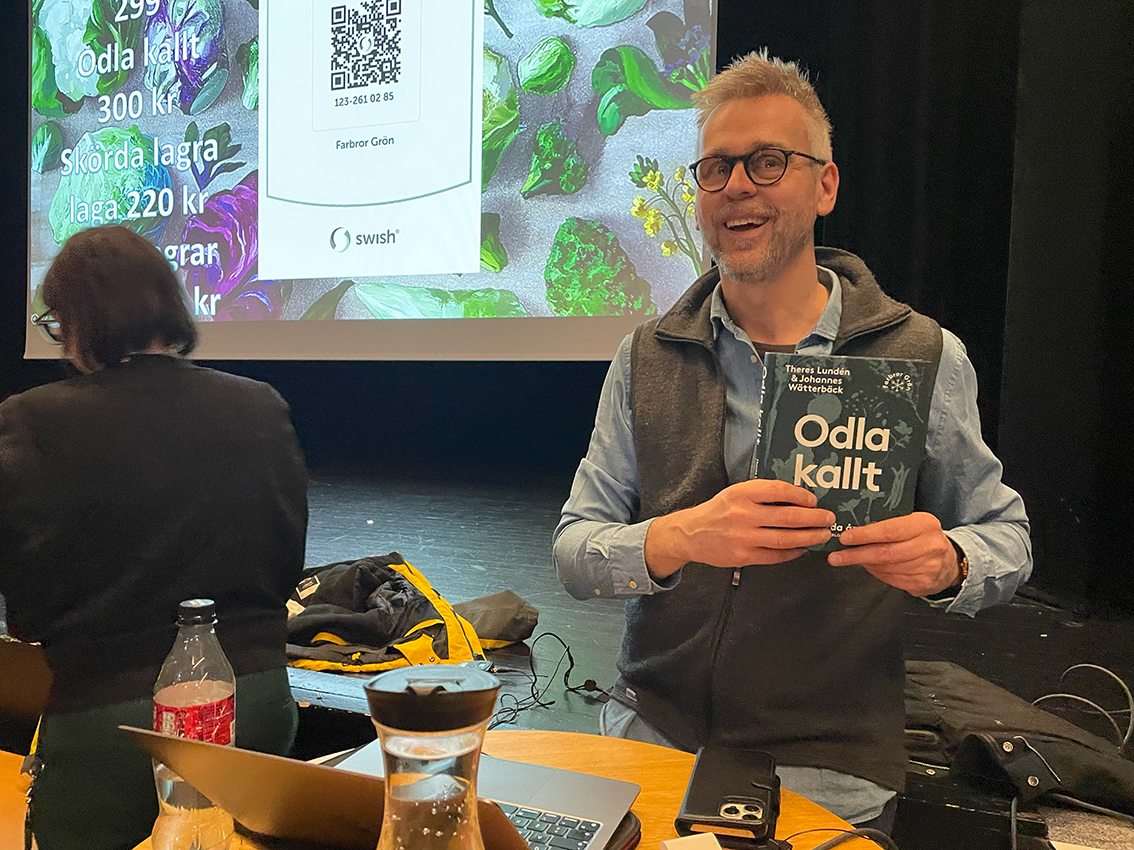 Under torsdagskvällen gästade Farbror Grön, Johannes Wetterbäck, Skillingehus och pratade om odling ur ett krisperspektiv.
