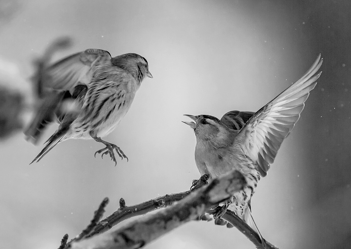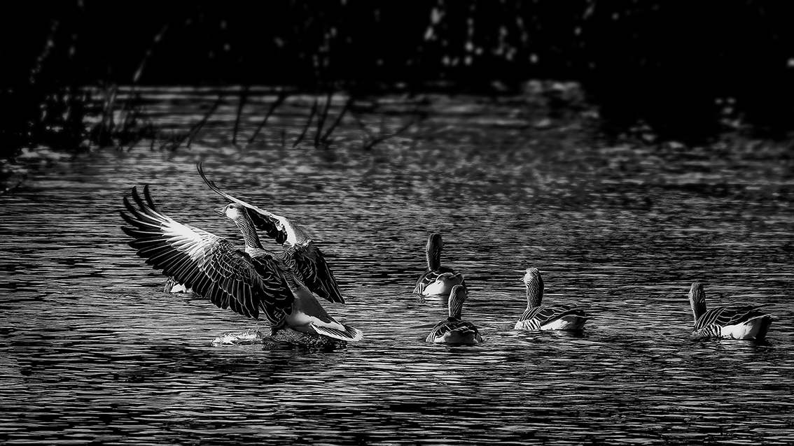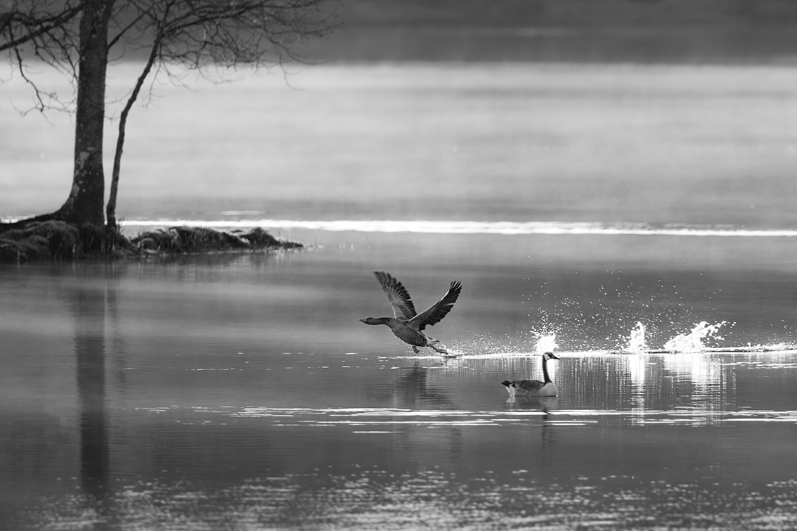 ” Underbart fin komposition med udden och trädet. Härligt fångat där man ser varje avstamp som fågeln gör. Fin mjukhet i bilden som framhävs av att skärpan inte riktigt finns där. Kanske hade bilden vunnit ännu mer utan det mörka i överkant men då hade en stor del av trädet försvunnit."