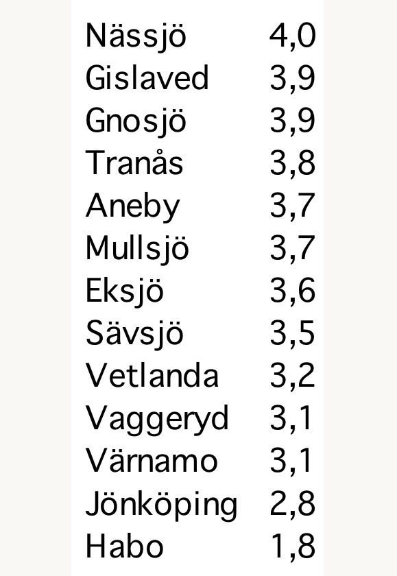 Det är bara två kommuner som har lägre procenttal, se statistiken intill