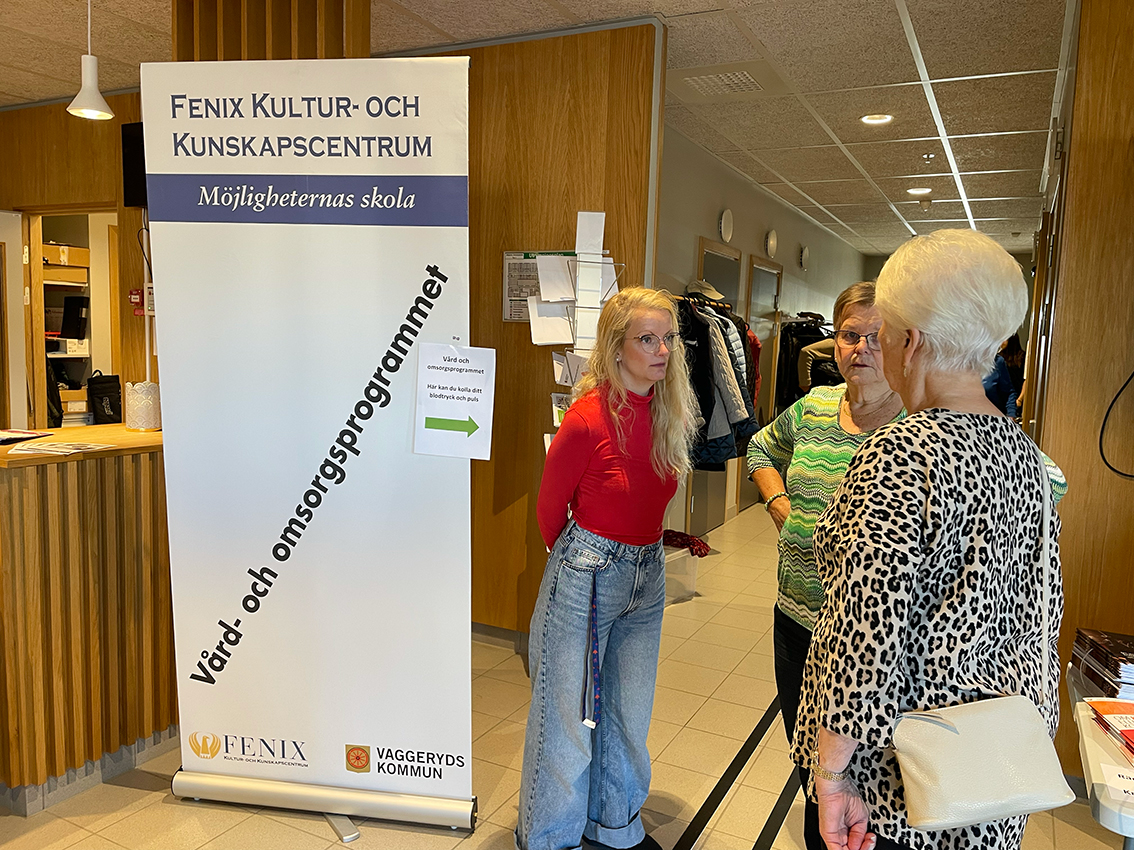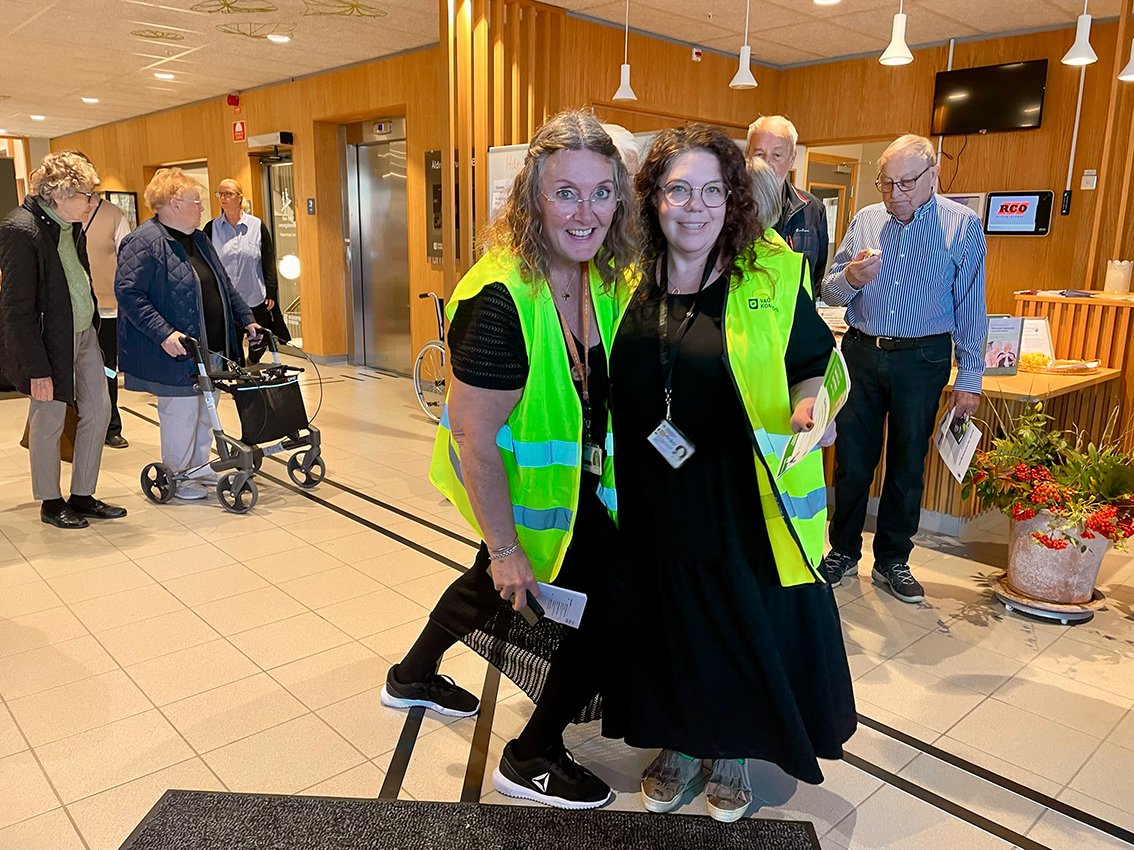 Vid entrén träffade vi Anita Jonsson och Maria Jigåker som är Vaggeryds kommuns äldresamordnare och de kände sig väldigt nöjda med mässan hitintills.