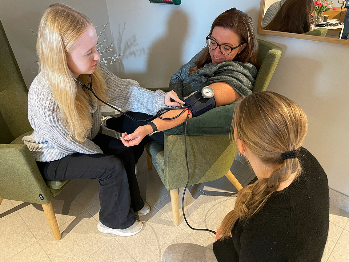I ett av rummen kunde man få mäta sin puls och sitt blodtryck. Det var elever som går andra året på Fenix vård- och omsorgsprogram.