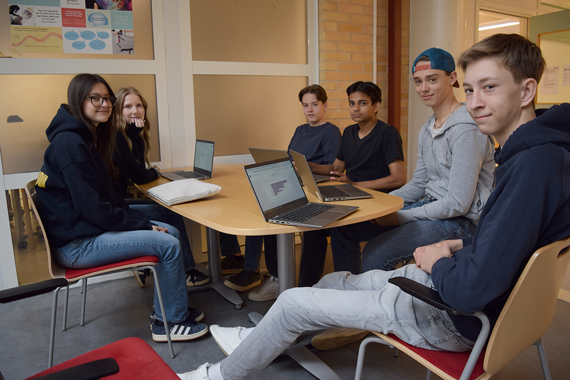 – Kommunen arbetar just nu fram ett miljöprogram, så det passar bra. Eleverna har fått följande instruktioner att designa en enkät om frågor, genomföra enkäten, analysera resultatet och föreslå konkreta åtgärder för att förbättra återvinningsvanor som man kommit fram till i undersökningen. Vi är en stor klass med 32 elever och eleverna har samlat in 147 svar.