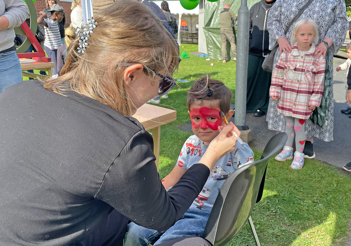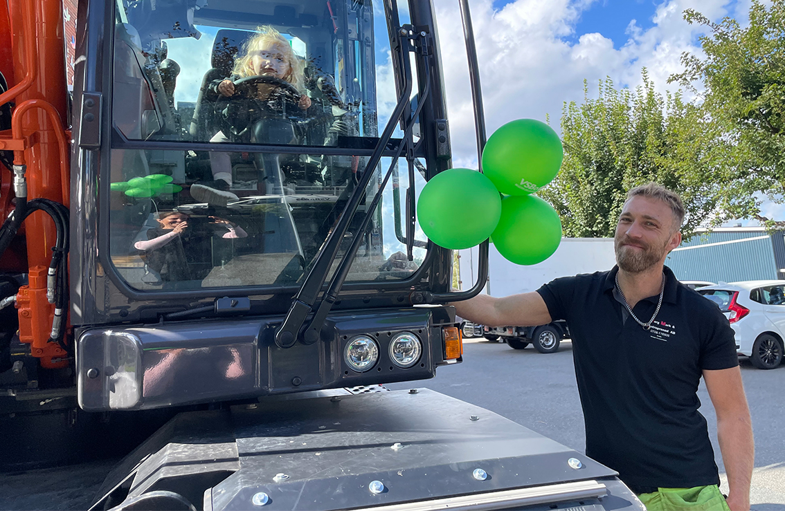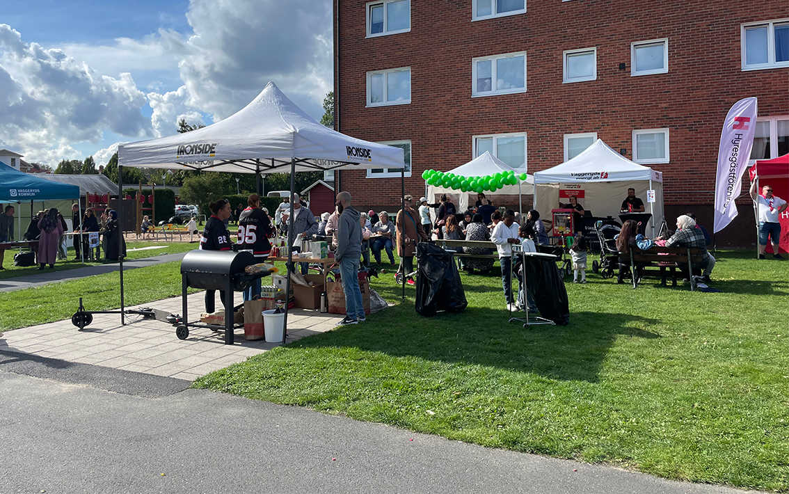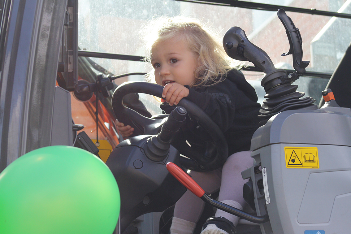 Det är Jonas Borg som annars basar över grävmaskinen och han upplevde ett stort intresse för maskinen. Många barn ville testa att sitta högt däruppe i den väldiga maskinen på parkeringen på Sturegatan. Mellan husen på gårdarna var det stor folksamling. Hans ”Ludde” Ludvigsson spelade och sjöng, det var ponnyridning, många olika utställare, ansiktsmålning, tävlingar och en hel massa annat. Lollo i Vsbos monter lyste i kapp med solen.