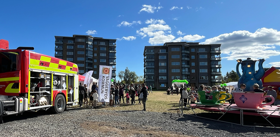 Det är Jonas Borg som annars basar över grävmaskinen och han upplevde ett stort intresse för maskinen. Många barn ville testa att sitta högt däruppe i den väldiga maskinen på parkeringen på Sturegatan. Mellan husen på gårdarna var det stor folksamling. Hans ”Ludde” Ludvigsson spelade och sjöng, det var ponnyridning, många olika utställare, ansiktsmålning, tävlingar och en hel massa annat. Lollo i Vsbos monter lyste i kapp med solen.