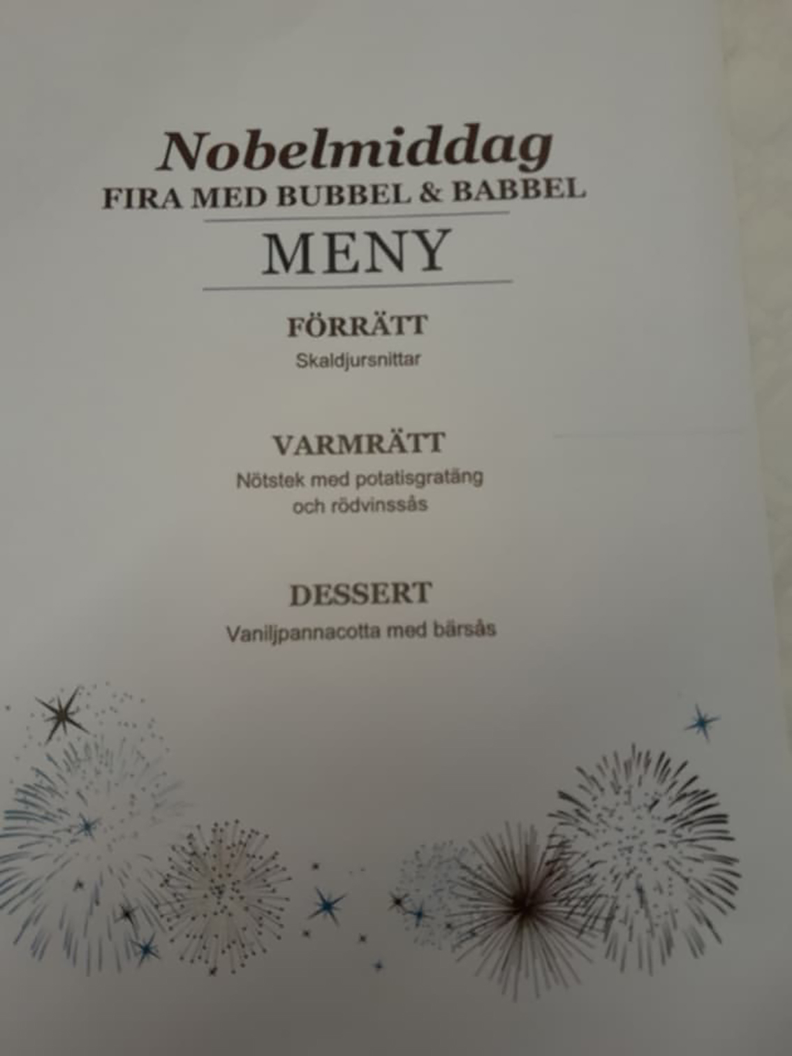 I dag serverades de boende på Sörgården i Skillingaryd en god trerätters Nobelmiddag. En mycket trevlig och uppskattad stund.