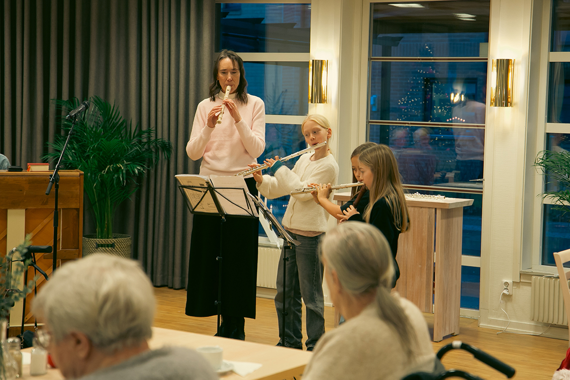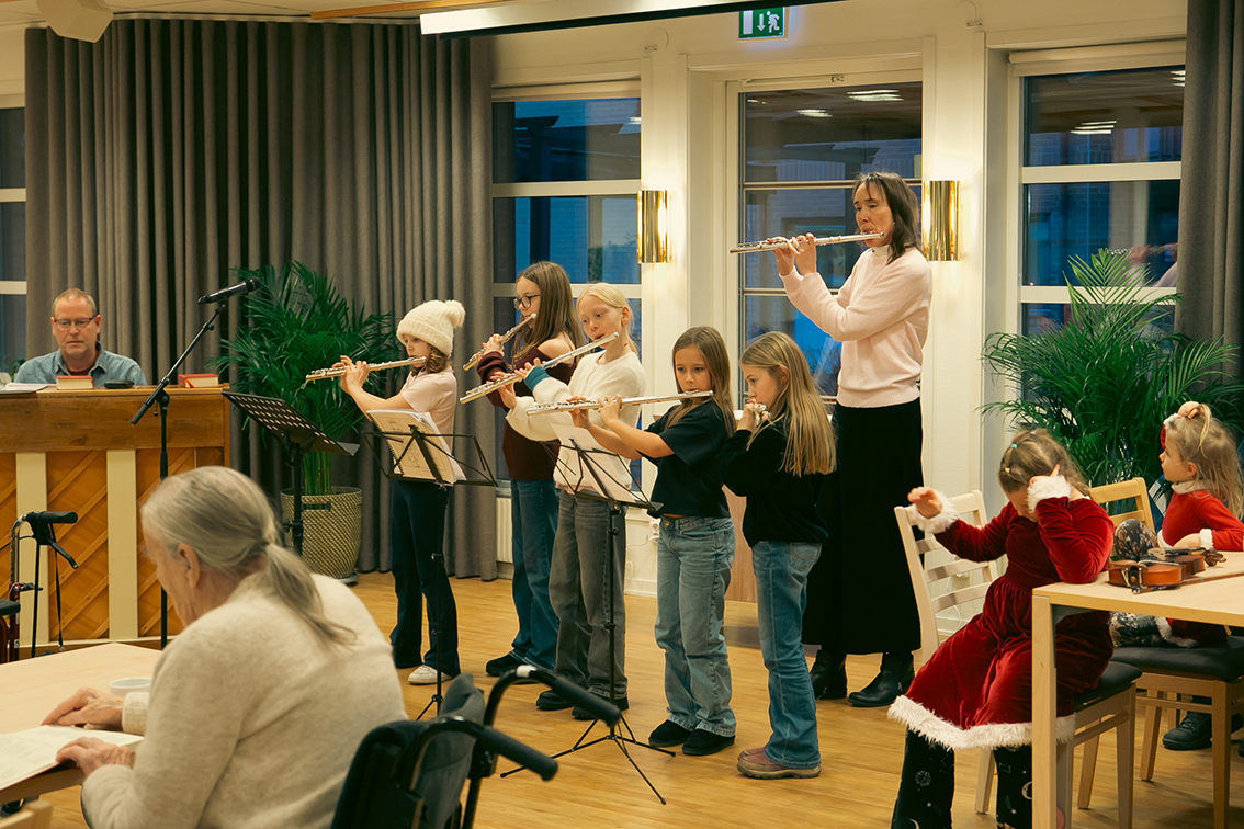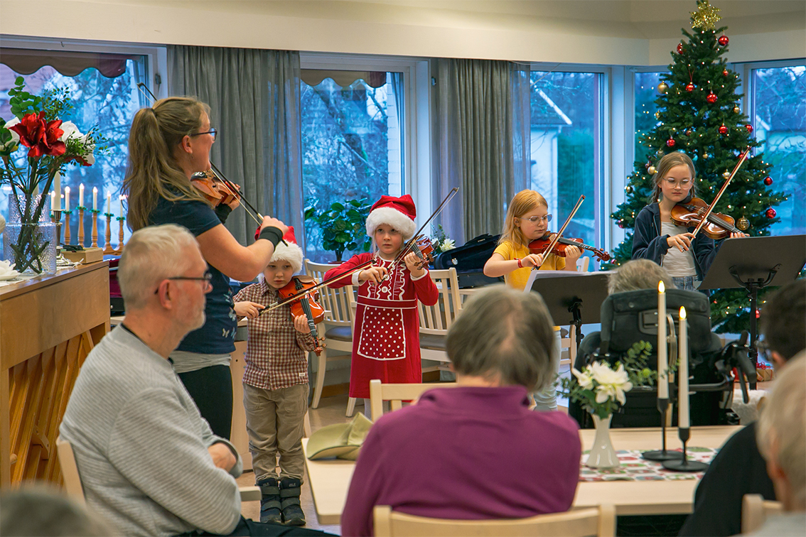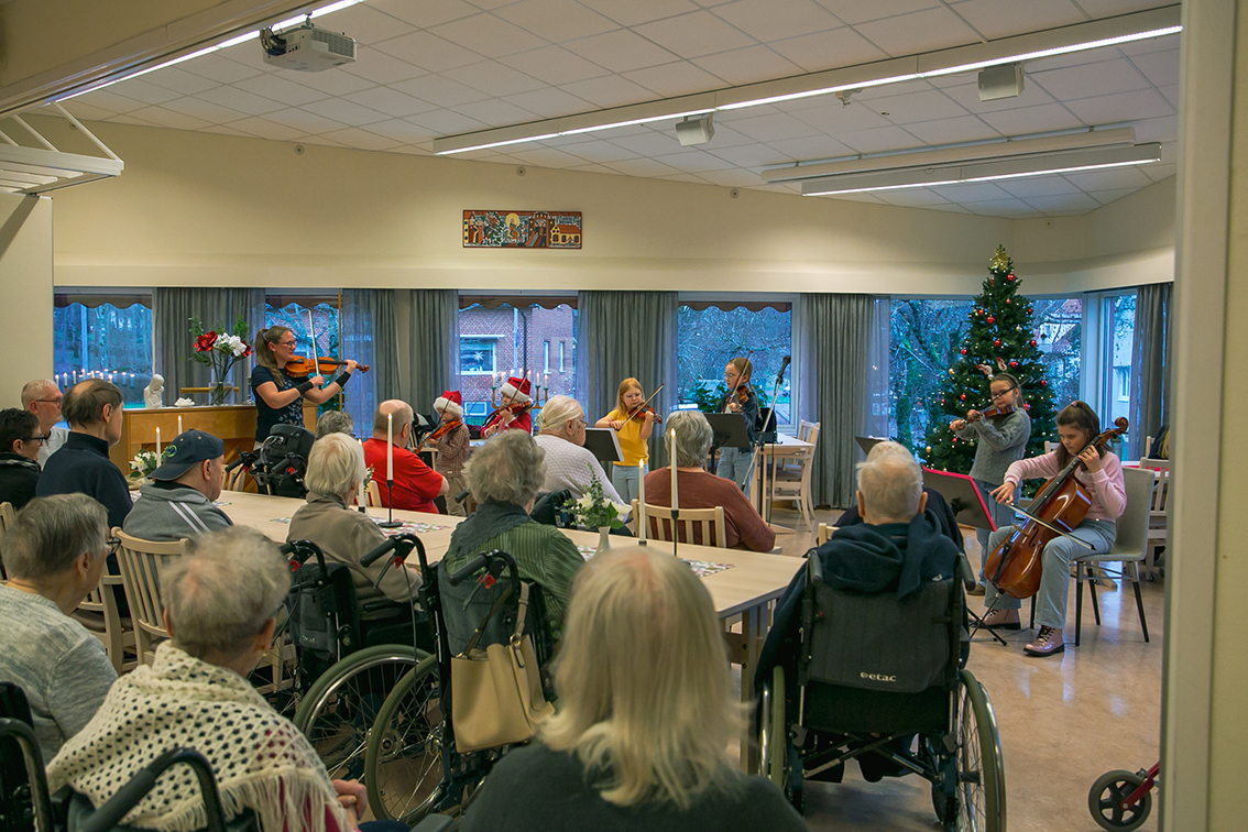 Elever från Vaggeryds kulturskola varit ute och spelat på kommunens äldreboenden. Det har varit en liten turné, så alla äldreboenden i kommunen har fått ett musikaliskt besök veckan så här före jul – av stråkar, flöjter och pianister i alla åldrar som deltagit. Det blev fina möten i väntan på julen.