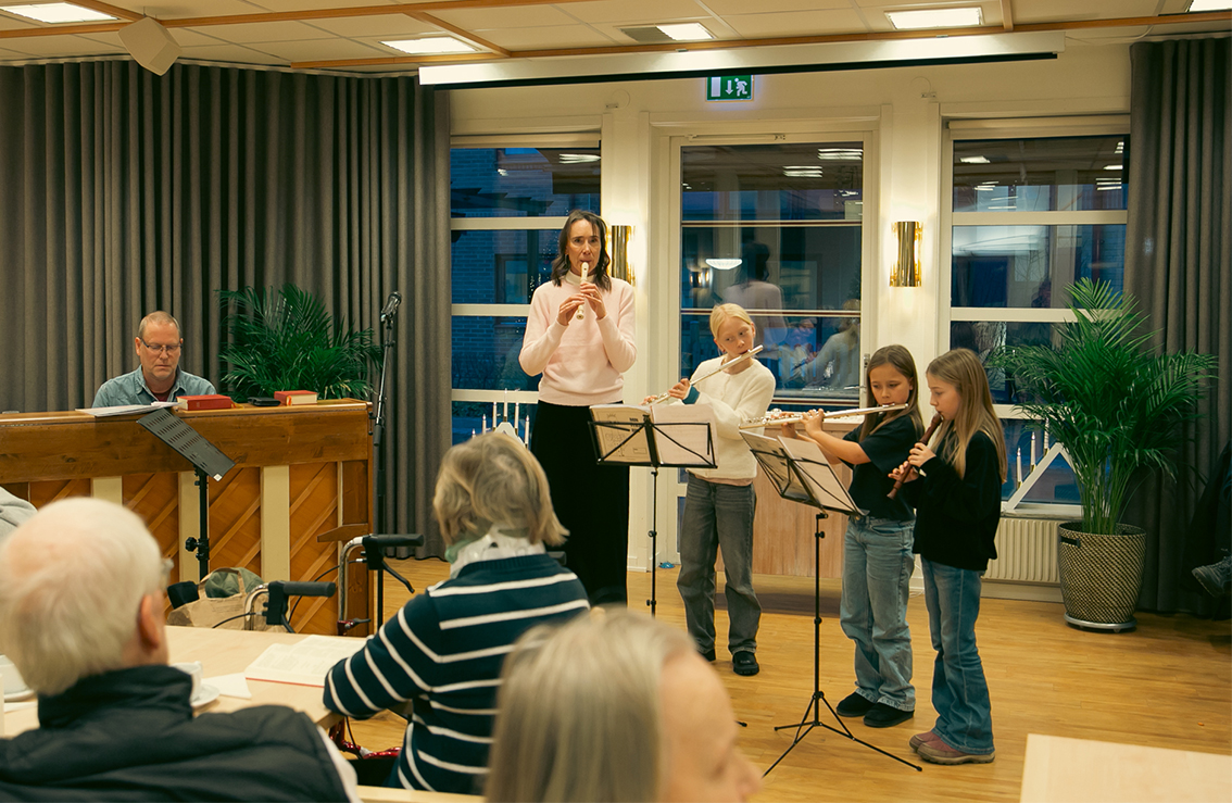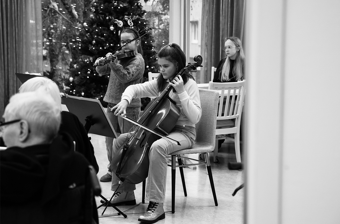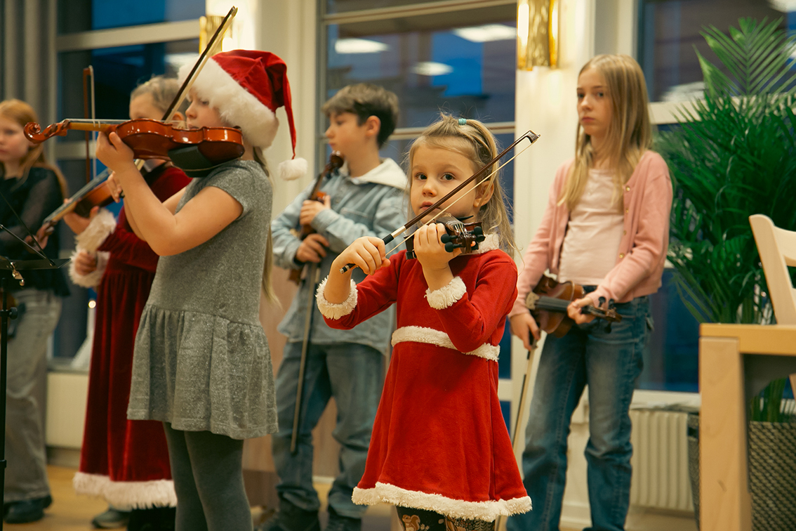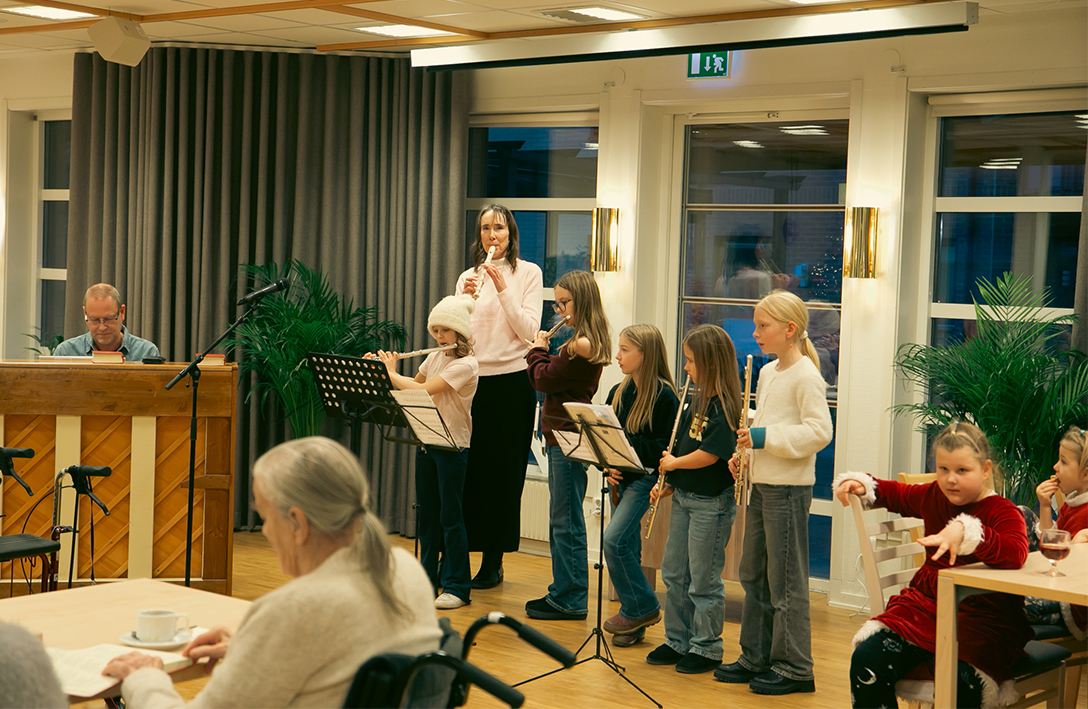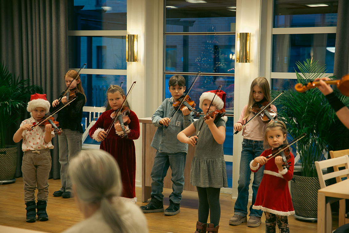 Elever från Vaggeryds kulturskola varit ute och spelat på kommunens äldreboenden. Det har varit en liten turné, så alla äldreboenden i kommunen har fått ett musikaliskt besök veckan så här före jul – av stråkar, flöjter och pianister i alla åldrar som deltagit. Det blev fina möten i väntan på julen.