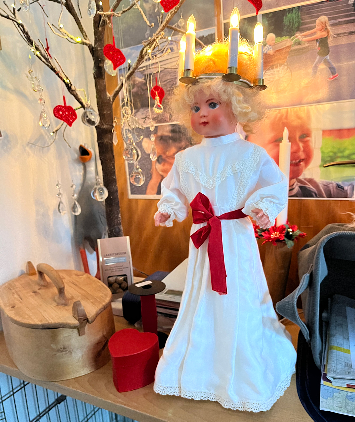– Det har stått i Petras gamla blöjpaket här i garderoben i källaren. Det åker ut och in varje jul. Huset bakades på Valhallavägen där vi bodde tidigare och flyttades hit 1975. En jul glömde jag att ta fram det men då påminde en släkting mig, berättar Christina.