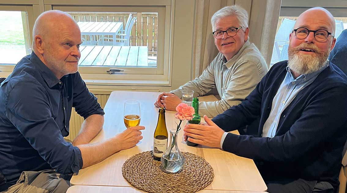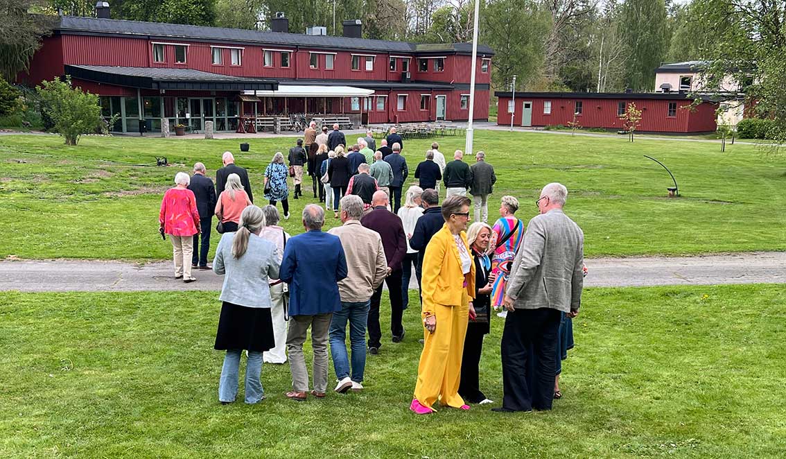 Därefter förflyttade alla sig till det vackra Tallnäs, där man fick många härliga timmar tillsammans med god mat och dryck. Man avslutade med äppelkaka och vaniljsås – och kaffe förstås.