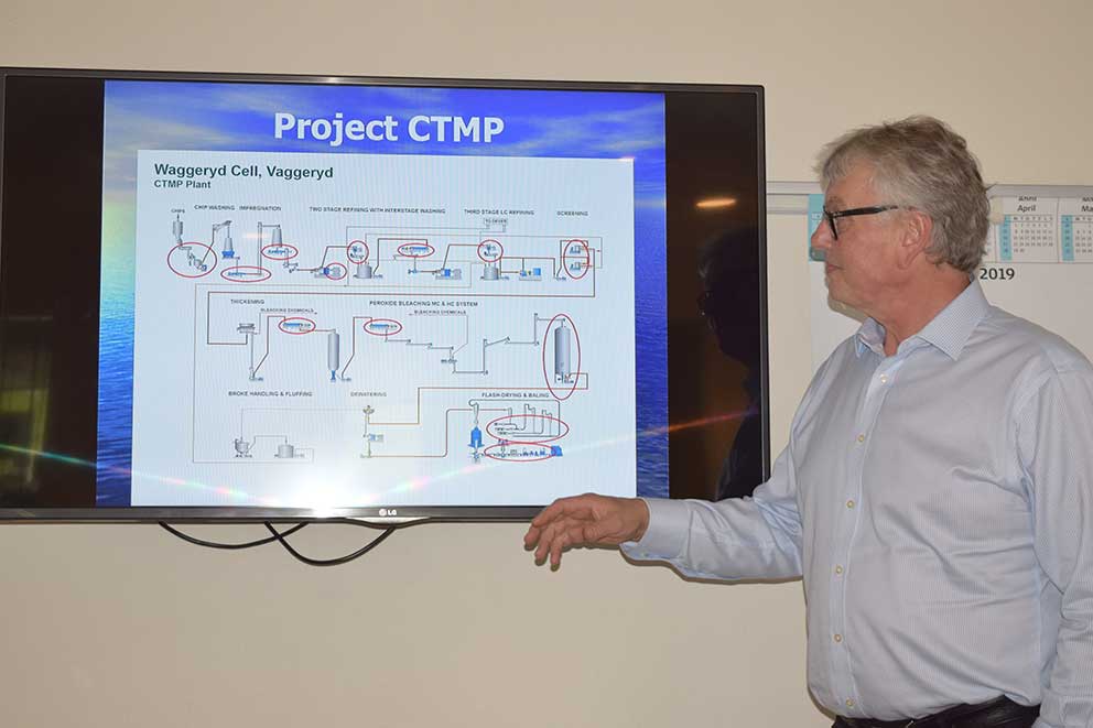 – Sulfatfabrik lade man ner 1982 och den låg i träda här i några år. Sågverksägaren kom på att han kunde använda fabriken efter en total modernisering och ombyggnad. Idag är vi 45 anställda totalt och tillverkar pappersmassa för kartong till världens alla hörn. Vår största marknad är i Indien och Kina. Vi ställer det i hamnen i Göteborg och sedan sköter handelshusen resten, det är rätt mycket papper och kreditrisker annars, berättar Ulf Karlsson.