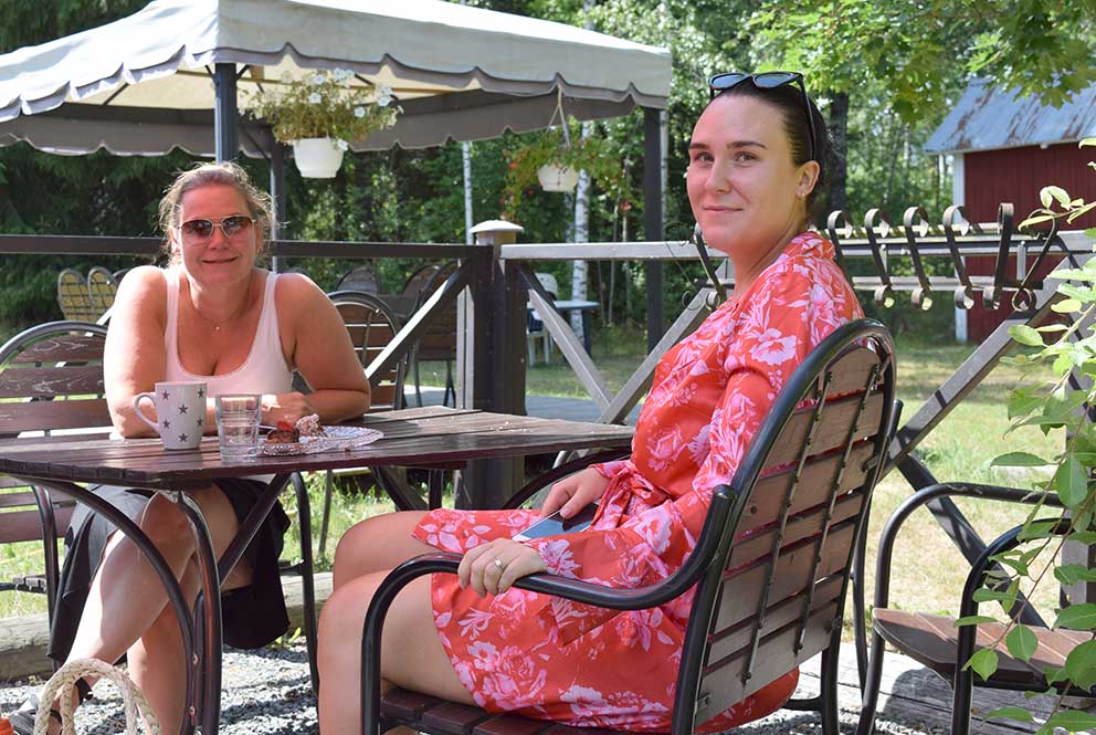 Lena Andersson, Skillingaryd, firade dottern Lotta Oskarsson, Stenshestra, med spa- och fikadag i Hok. Lotta som nyss fyllt 25 år trivdes i värmen, men mamma Lena suckade lite lätt och tyckte nog att det räckte med värmen nu.