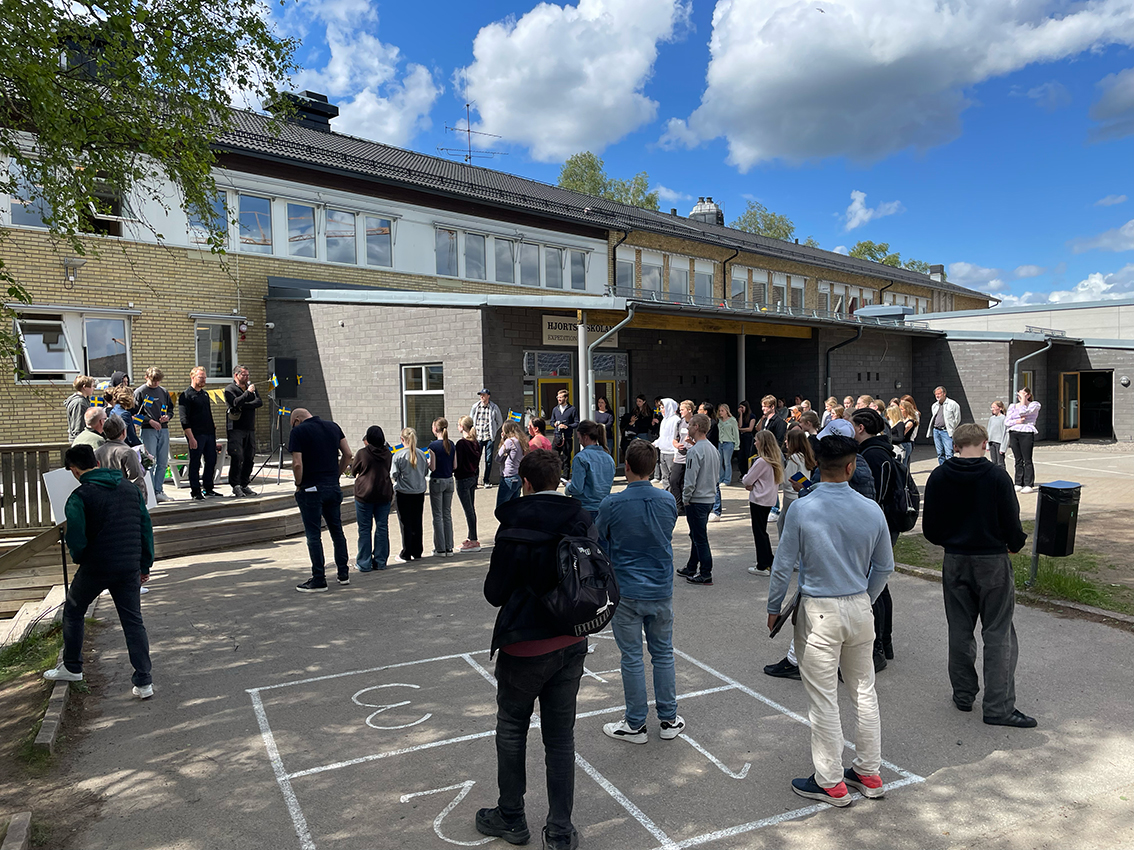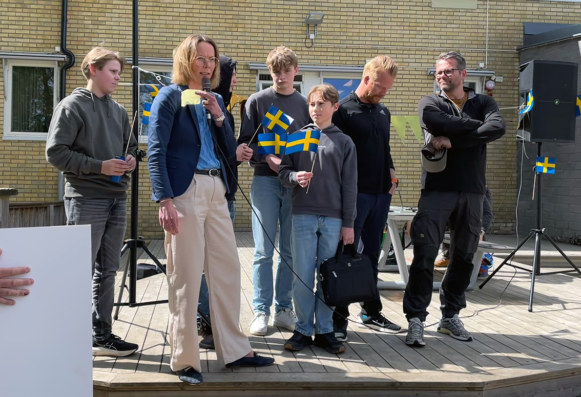Karin Sparrenholt som är rektor på Hjortsjöskolan höll i mikrofonen och sa: