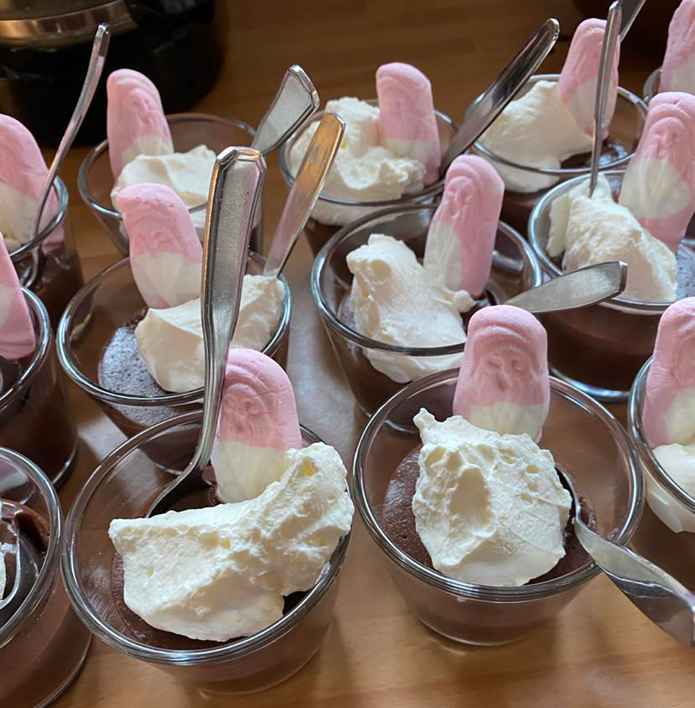 Barnen blev serverade av Ingvar, Hans-Eric, Majken och Kerstin. Alla barn fick hamburgare med sötpotatis, och hembakade hamburgerbröd av kocken Carolina, till nobelfesten som efterföljdes av en dessert med chokladmousse.