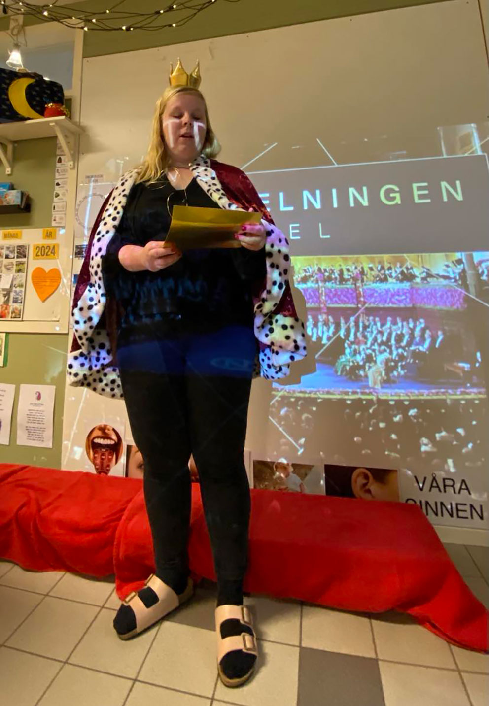– Barnen fick kunskap om Nobel och ”Kungen” kom för att dela ut varsitt Nobelpris till barnen för deras deltagande i temat ”Djuren i skogen”. Barnen fick gå fram till Kungen och hämta medalj och därefter tittade vi på en film när desserten serverades på Nobel. Barnen fick sjunga ”Du gamla du fria” och därefter gick vi ut ur salen till låten ”Drottningen Saba festmarsch” ur den förlorade sonen, berättar förskollärarna på förskolan Framtiden.