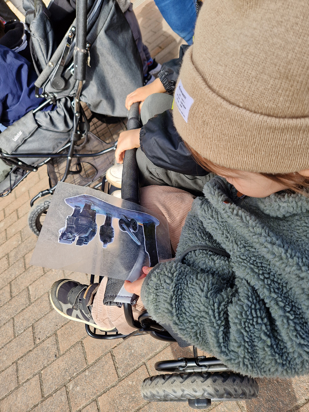 Ett ”miniatyrtorg” byggdes upp på förskolan med bilder på skulpturerna och under onsdagsförmiddagen var det dags för barnen, som är mellan 2 och 4 år, att besöka den riktiga utställningen i källaren på kommunhuset. Bilder på skulpturerna togs med och de 11 barnen med sina pedagoger skulle gå in i det ”stora huset”. Ett av dagens äventyr som barnen såg fram emot var att åka hiss.