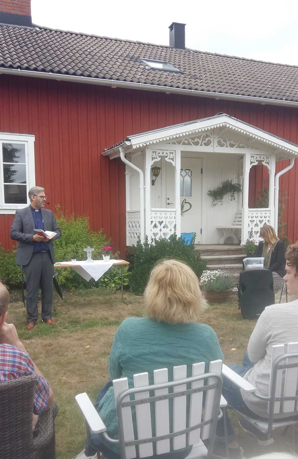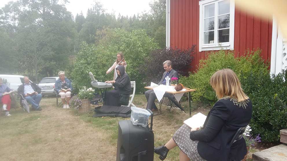 I Ålaryd var det i söndags friluftsgudstjänst och avslutningen, med tårta, intogs hemma hos Madelen och Patrik Johansson.