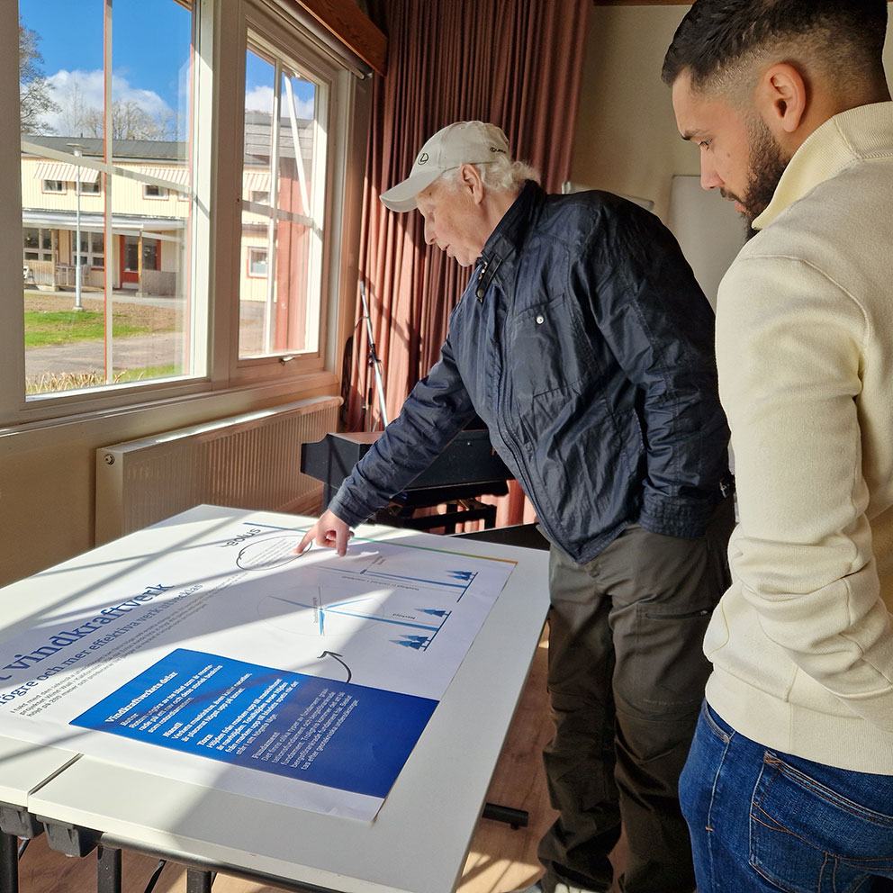 Eolus projekterar och bygger. Vad händer sedan? – Vi bygger parken och sedan säljer vi. Man gör kalkyler på vad det tar att räkna tillbaka kostnaden. Hade du ställt frågan för 6 år sedan så hade vi kanske sagt 30 år. Nu är det svårare att säga. Det beror på elpris och elavtal i relation till investering, berättar Prince Jeddi för en närboende.