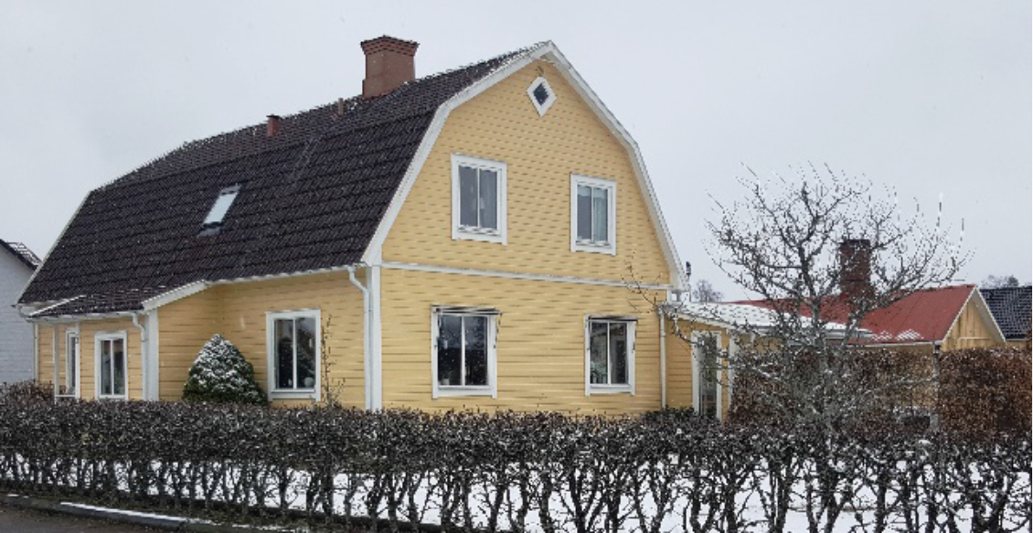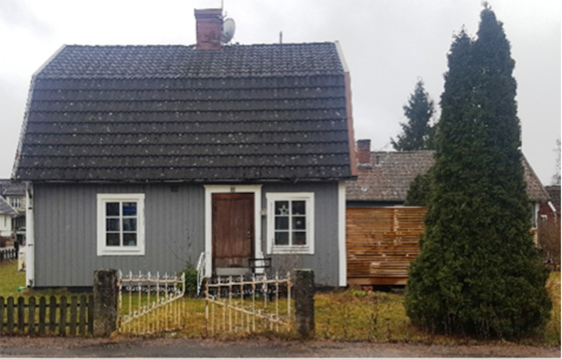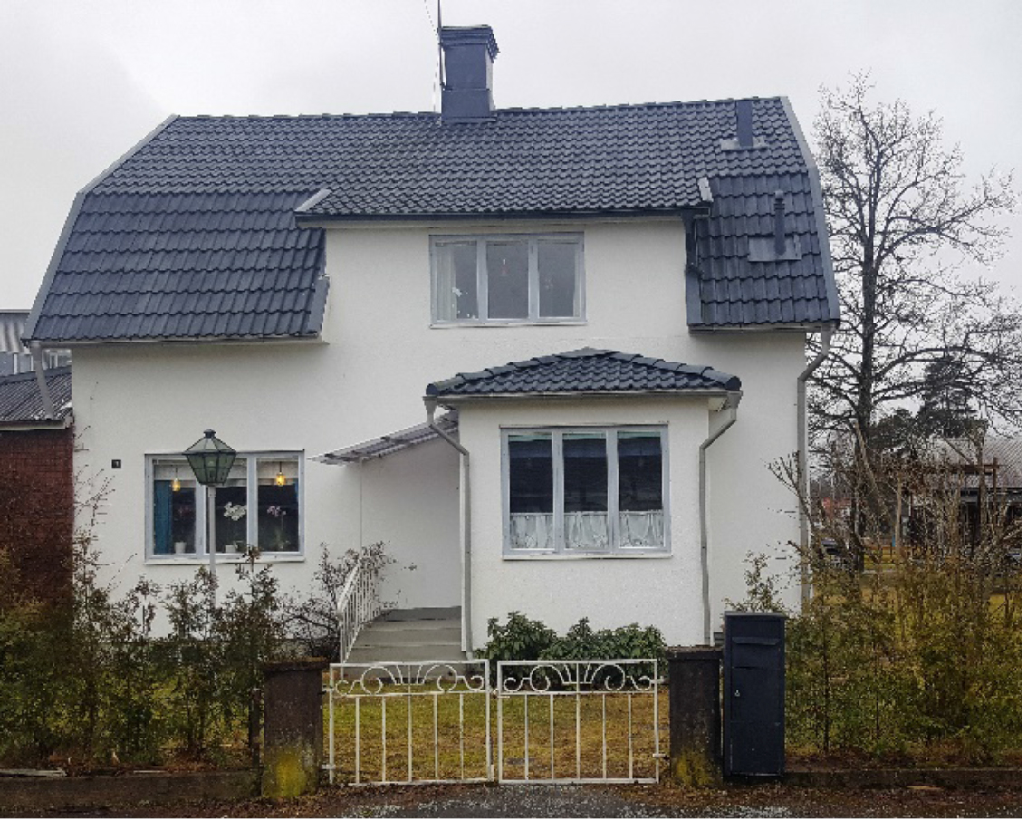 När ovanstående foto togs var husets ingång vänd mot den enda väg som fanns i närheten, Jönköpingsvägen. Idag är husets ingång mot Ödestuguvägen, men den vägen fanns inte då fullt ut. Man ser C. Svensson smedja i bakgrunden på bilden.