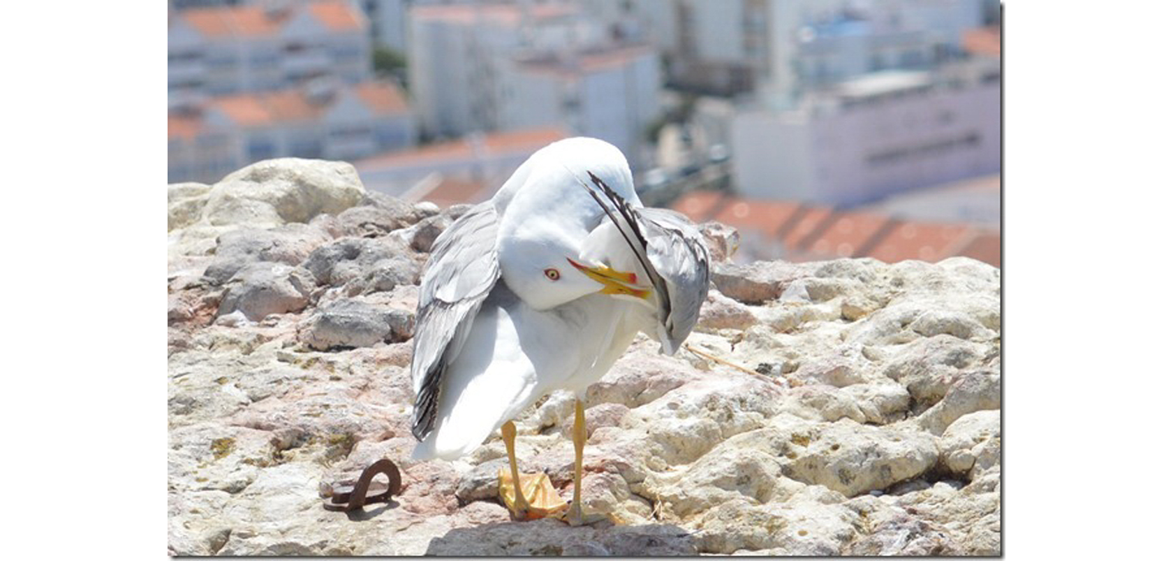 Bildens medelhavstrut, ”Larus michahellis”, fotograferad i Portugal, är en stor trut inom familjen ”Laridae” som ingår i gråtrutskomplexet och klassificerades tidigare som underart till gråtruten.