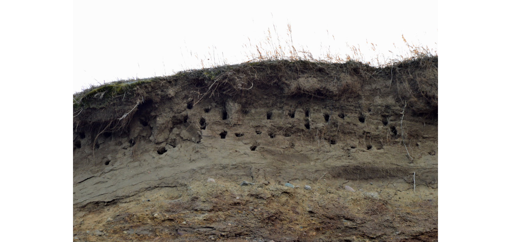 Backsvalekoloni, ”Riparia riparia”, vid Rosenlunds bankar invid Vättern i Huskvarna, foto Kjell Holmqvist, Huskvarna.
